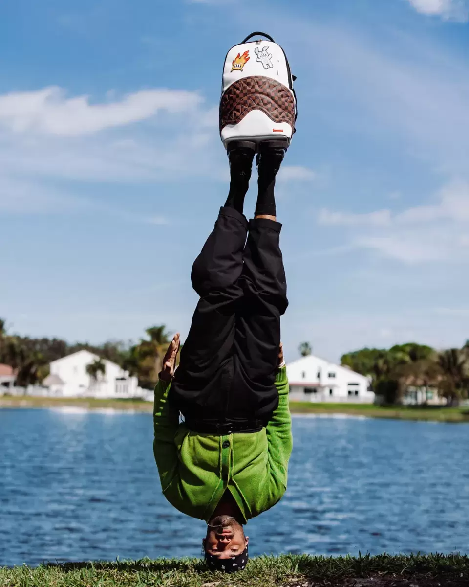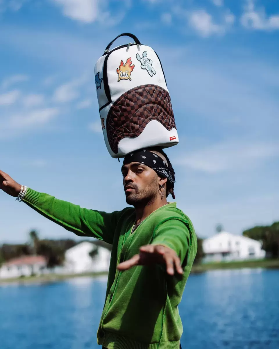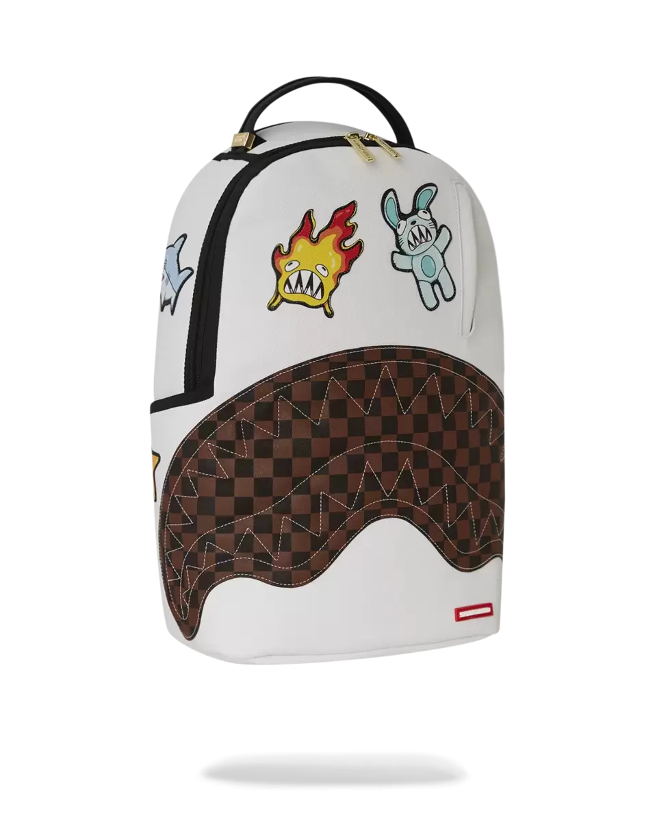 Abmessungen: 45,7 x 15,2 x 29,2 cm Vordertasche mit Reißverschluss Seitentaschen Reißverschlusstasche Separates Brillenfach aus Velours Ergonomische Netzrückenpolsterung Verstellbare Gurte für individuelle Anpassung Goldfarbene Reißverschlüsse mit Metallbeschlägen Metallplakette „Sprayground Authentic“ Durchschubtasche am Rücken zur Befestigung am Handgepäck für freie Hände