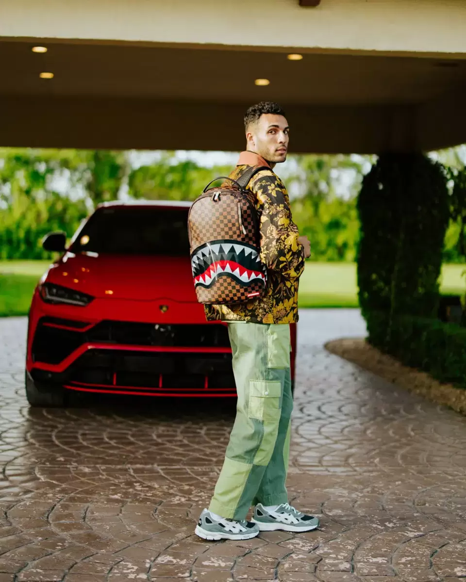 Abmessungen: 45,7 x 15,2 x 29,2 cm Vordertasche mit Reißverschluss Seitentaschen Reißverschlusstasche Separates Brillenfach aus Velours Ergonomische Netzrückenpolsterung Verstellbare Riemen für individuelle Anpassung Goldfarbene Reißverschlüsse mit Metallbeschlägen Metallplakette „Sprayground Authentic“ Durchschubtasche auf der Rückseite zur Befestigung am Handgepäck für freie Hände