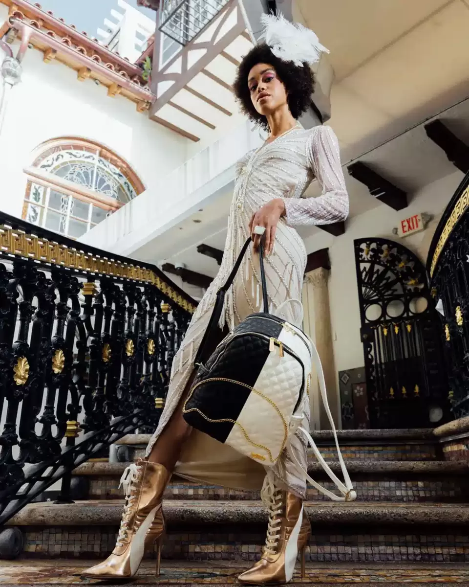 Maße: 25,4 x 12,7 x 29,2 cm Zwei große Hauptfächer mit Reißverschluss Seitentaschen Reißverschlussfach Verstellbare Riemen für individuelle Anpassung Goldfarbene Reißverschlüsse mit Metallbeschlägen