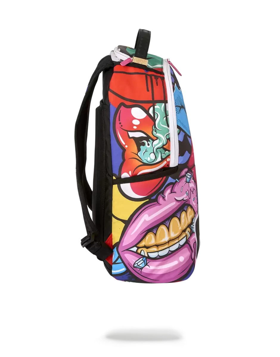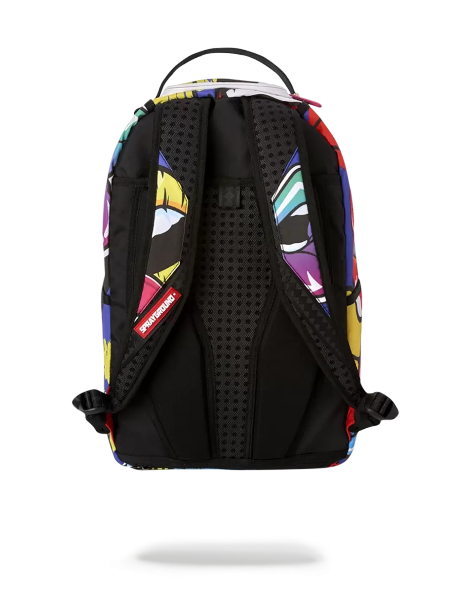 Abmessungen: 45,7 x 15,2 x 29,2 cm Vordertasche mit Reißverschluss Seitentaschen Reißverschlusstasche Separates Brillenfach aus Velours Ergonomische Netzrückenpolsterung Verstellbare Gurte für individuelle Anpassung Pinkfarbene Reißverschlüsse mit Metallbeschlägen Metall-Badge „Sprayground Authentic“ Durchschubtasche auf der Rückseite zur Befestigung am Handgepäck für freie Hände