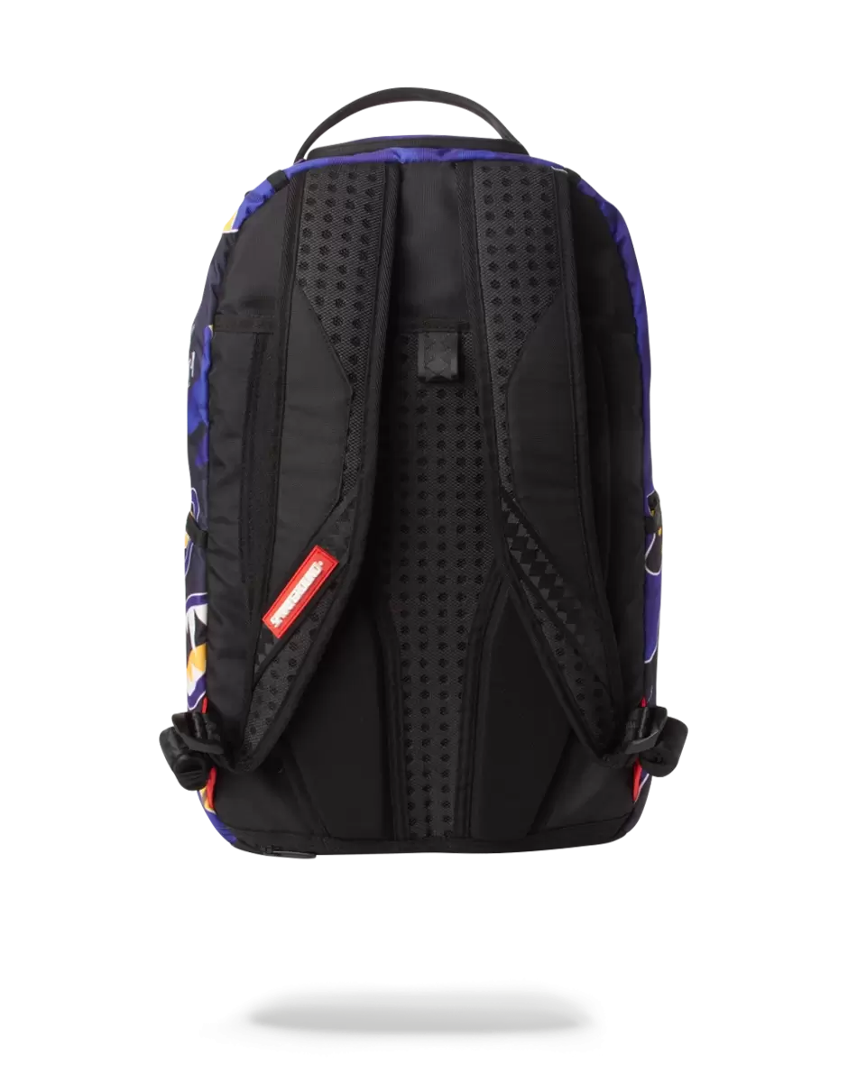 Abmessungen: 45,7 x 15,2 x 29,2 cm Vordertasche mit Reißverschluss Seitentaschen Reißverschlusstasche Separates Brillenfach aus Velours Ergonomische Netzrückenpolsterung Verstellbare Gurte für individuelle Anpassung Lila Reißverschlüsse mit Metallbeschlägen Metall-Badge „Sprayground Authentic“ Durchschubtasche auf der Rückseite zur Befestigung am Handgepäck für freie Hände