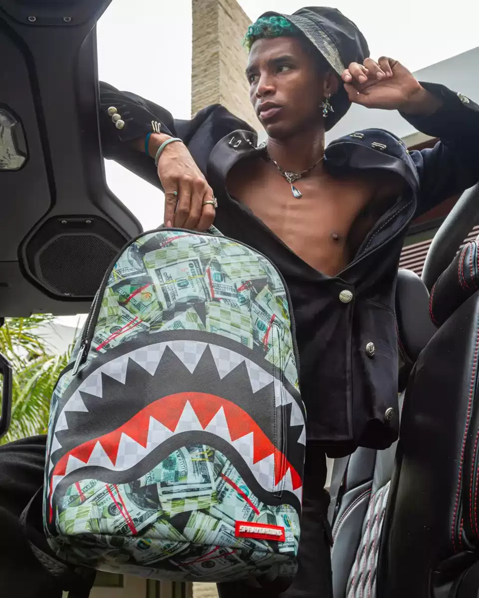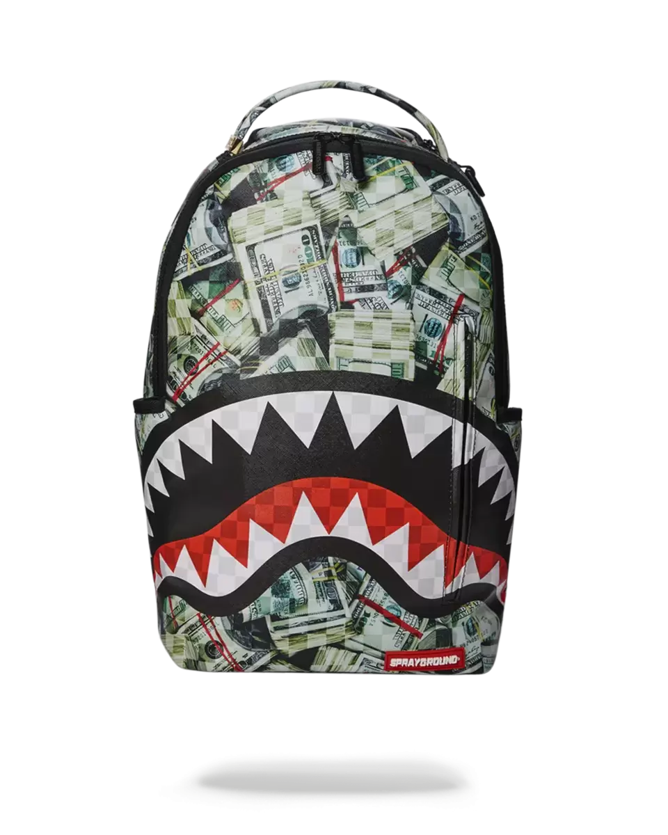 Abmessungen: 45,7 x 15,2 x 29,2 cm Vordertasche mit Reißverschluss Seitentaschen Reißverschlusstasche Separates Brillenfach aus Velours Ergonomische Netzrückenpolsterung Verstellbare Riemen für individuelle Anpassung Goldfarbene Reißverschlüsse mit Metallbeschlägen Metall-Badge „Sprayground Authentic“ Durchschubtasche auf der Rückseite zur Befestigung am Handgepäck für freie Hände