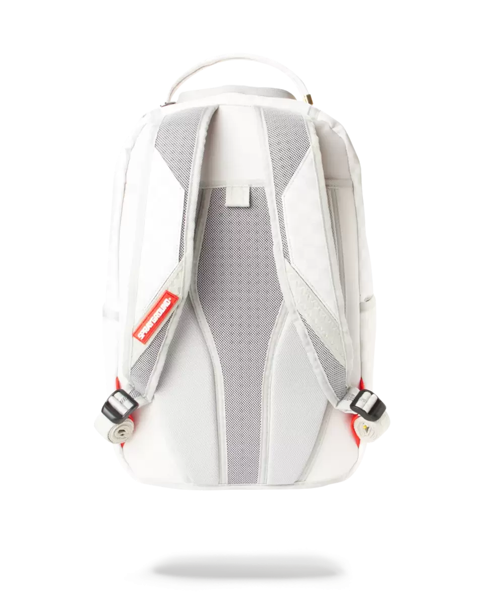 Abmessungen: 45,7 x 15,2 x 29,2 cm Vordertasche mit Reißverschluss Seitentaschen Reißverschlusstasche Separates Brillenfach aus Velours Ergonomische Netzrückenpolsterung Verstellbare Gurte für individuelle Anpassung Silberne Reißverschlüsse mit Metallbeschlägen Metallplakette „Sprayground Authentic“ Durchschubschlaufe auf der Rückseite zur Befestigung am Handgepäck für freie Hände