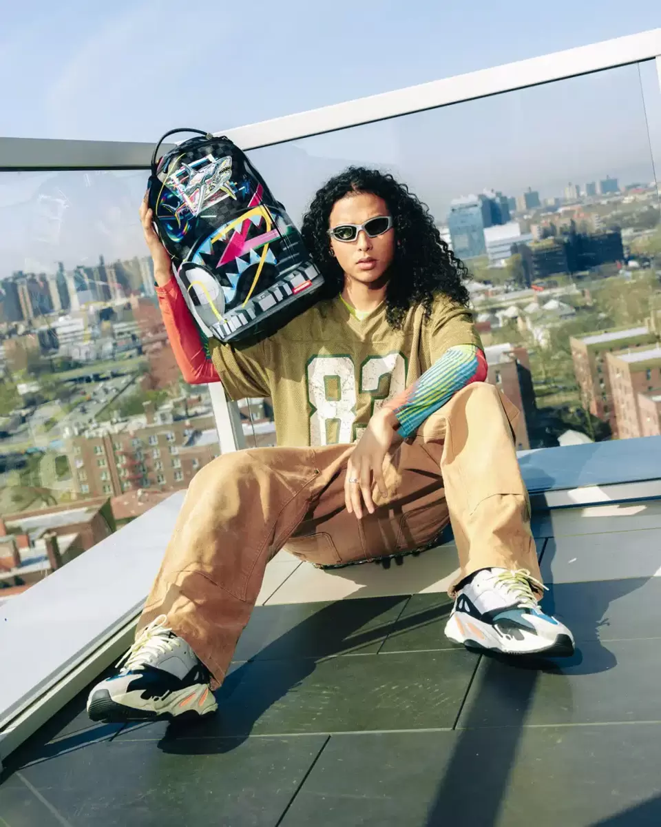 Abmessungen: 45,7 x 15,2 x 29,2 cm Vordertasche mit Reißverschluss Seitentaschen Reißverschlusstasche Separates Brillenfach aus Velours Ergonomische Netzrückenpolsterung Verstellbare Riemen für individuelle Anpassung Goldfarbene Reißverschlüsse mit Metallbeschlägen Metall-Badge „Sprayground Authentic“ Durchschubtasche auf der Rückseite zur Befestigung am Handgepäck für freie Hände