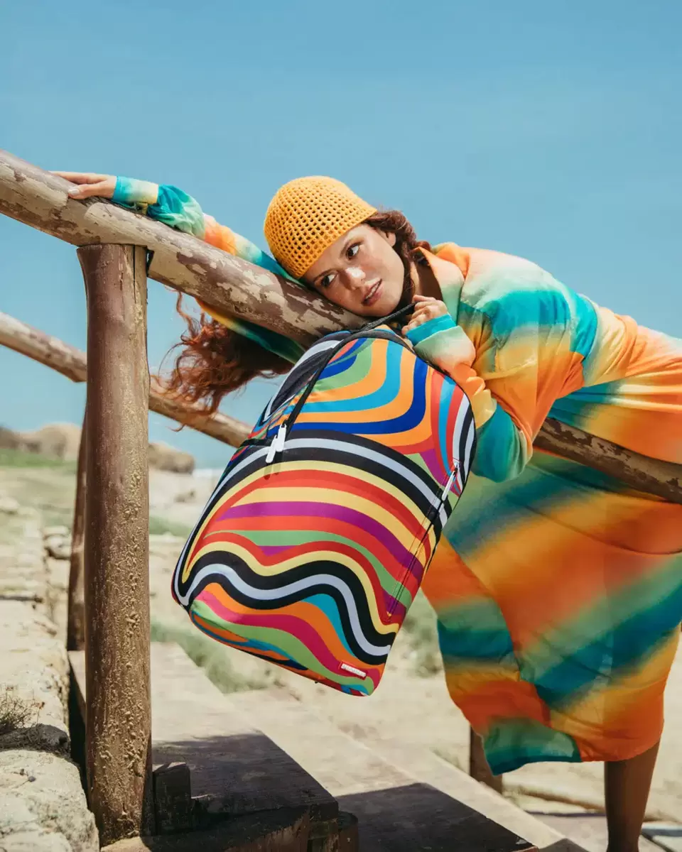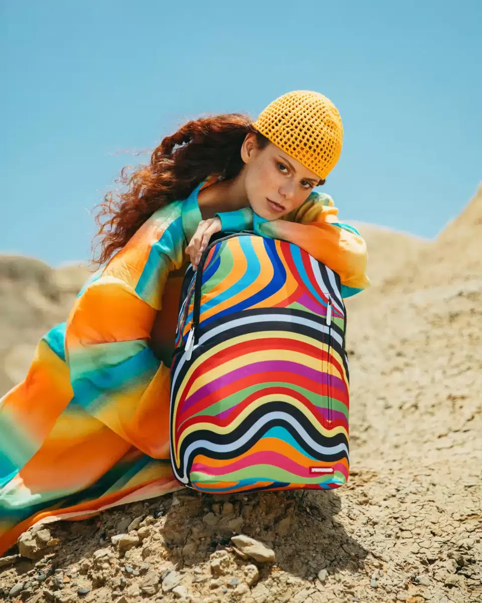 Abmessungen: 45,7 x 15,2 x 29,2 cm (18″ x 6″ x 11,5″) Vordertasche mit Reißverschluss Seitentaschen Reißverschlusstasche Separates Brillenfach aus Velours Ergonomische Netzrückenpolsterung Verstellbare Gurte für individuelle Anpassung Goldfarbene Reißverschlüsse mit Metallbeschlägen Metall-Badge „Sprayground Authentic“ Durchschubtasche auf der Rückseite zur Befestigung am Handgepäck für freie Hände