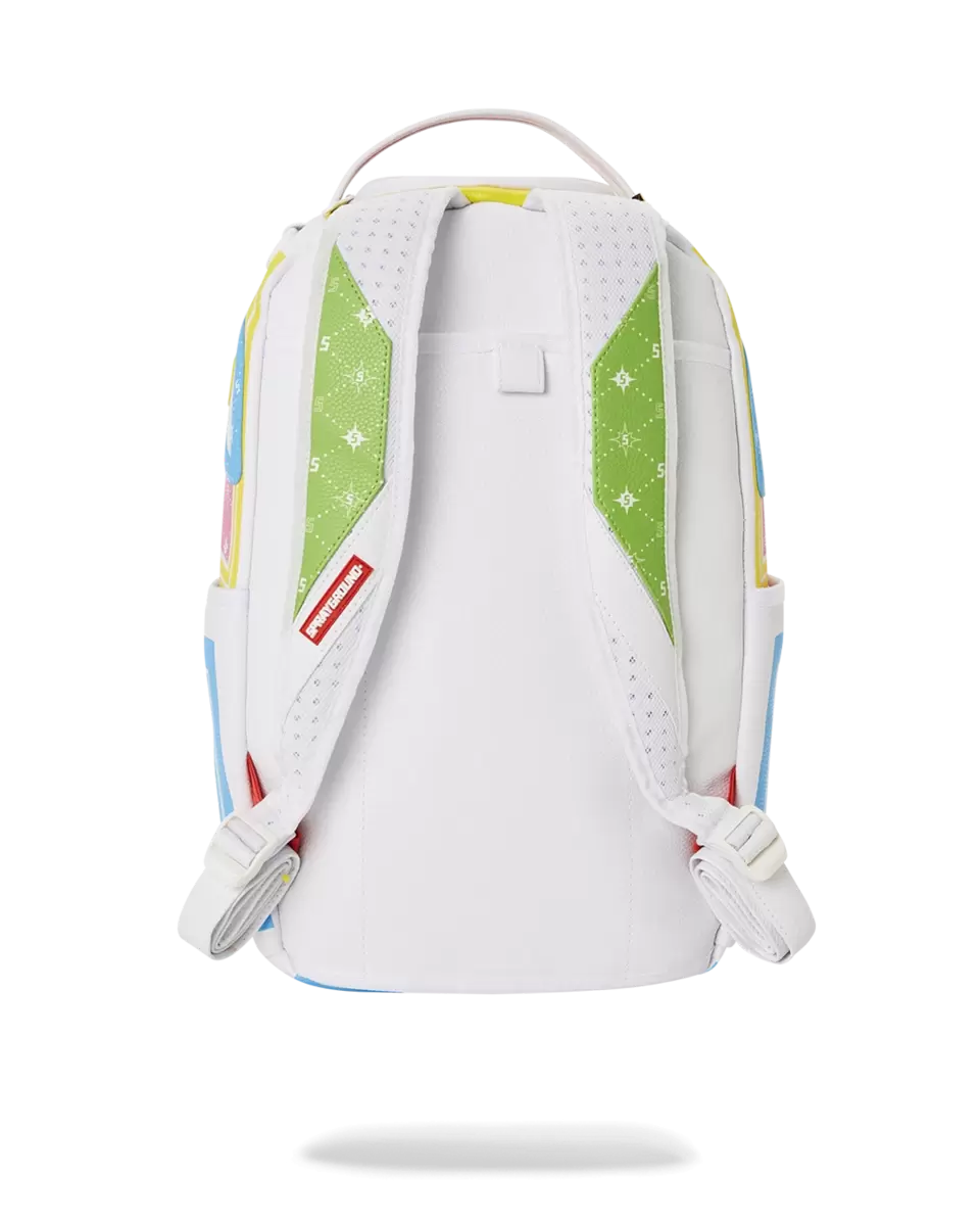 Abmessungen: 45,7 x 15,2 x 29,2 cm Vordertasche mit Reißverschluss Seitentaschen Separates Sonnenbrillenfach aus Velours Verstellbare Riemen für individuelle Anpassung Goldfarbene Reißverschlüsse mit Metallbeschlägen Metallplakette „Sprayground Authentic“ Durchschubtasche auf der Rückseite zur Befestigung am Handgepäck für freie Hände