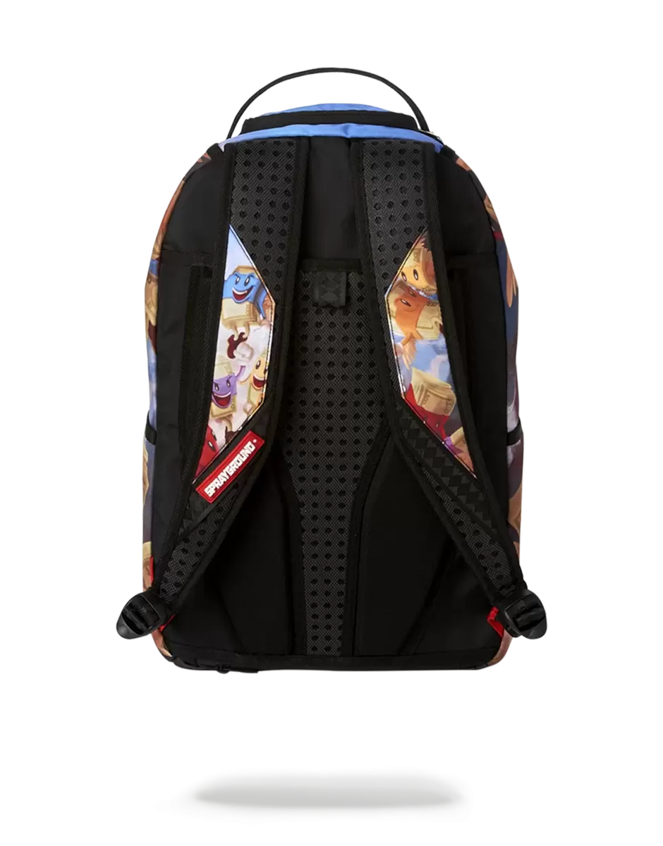Abmessungen: 45,7 x 15,2 x 29,2 cm Vordertasche mit Reißverschluss Seitentaschen Reißverschlusstasche Separates Brillenfach aus Velours Ergonomische Netzrückenpolsterung Verstellbare Gurte für individuelle Anpassung Silberne Reißverschlüsse mit Metallbeschlägen Metall-Badge „Sprayground Authentic“ Durchschubschlaufe am Rücken zur Befestigung am Handgepäck für freie Hände