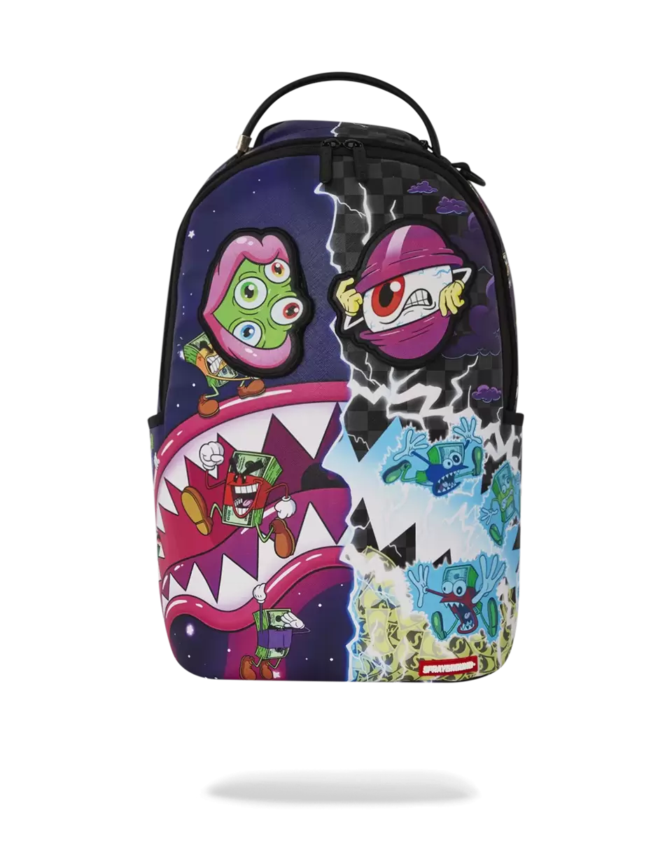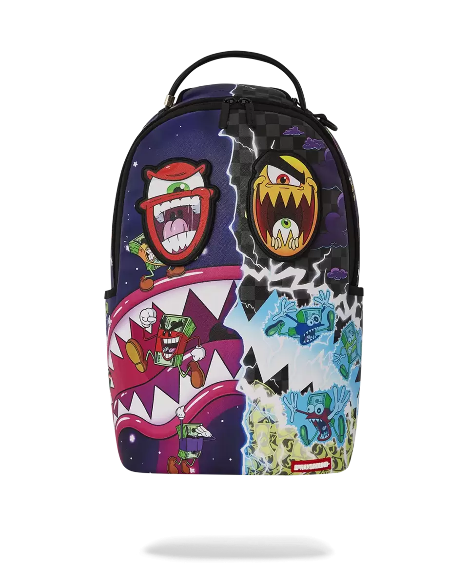 Abmessungen: 45,7 x 15,2 x 29,2 cm Vordertasche mit Reißverschluss Seitentaschen Reißverschlusstasche Separates Brillenfach aus Velours Ergonomische Netzrückenpolsterung Verstellbare Gurte für individuelle Anpassung Goldfarbene Reißverschlüsse mit Metallbeschlägen Metallplakette „Sprayground Authentic“ Durchschubtasche auf der Rückseite zur Befestigung am Handgepäck für freie Hände