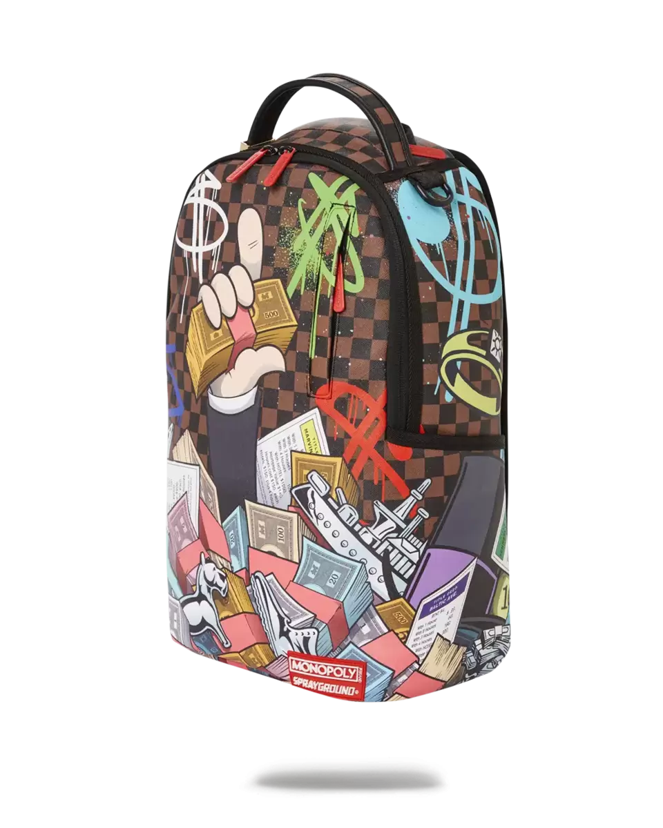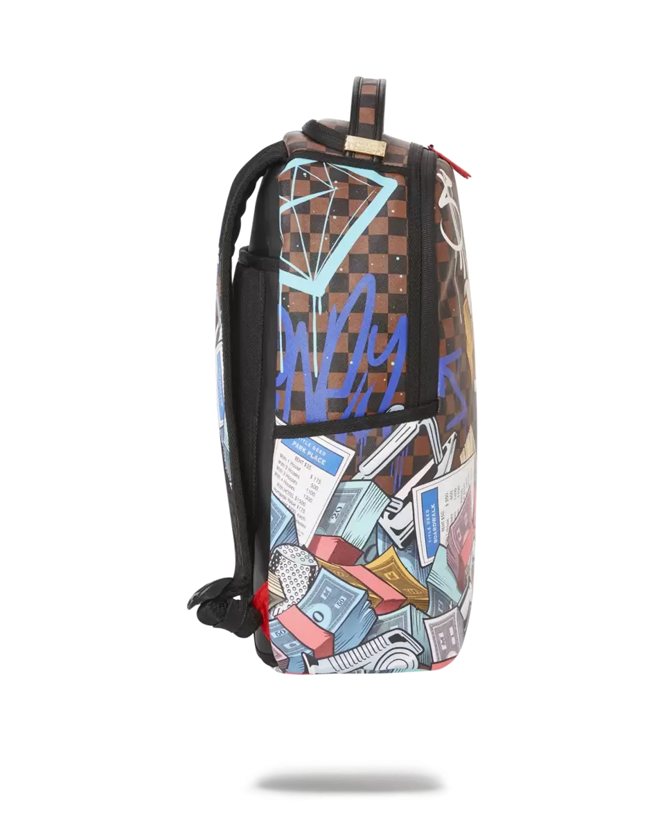 Abmessungen: 45,7 x 15,2 x 29,2 cm Vordertasche mit Reißverschluss Seitentaschen Reißverschlusstasche Separates Brillenfach aus Velours Ergonomische Netzrückenpolsterung Verstellbare Riemen für individuelle Anpassung Goldfarbene Reißverschlüsse mit Metallbeschlägen Metallplakette „Sprayground Authentic“ Durchschubschlaufe an der Rückseite zur Befestigung am Handgepäck für freie Hände