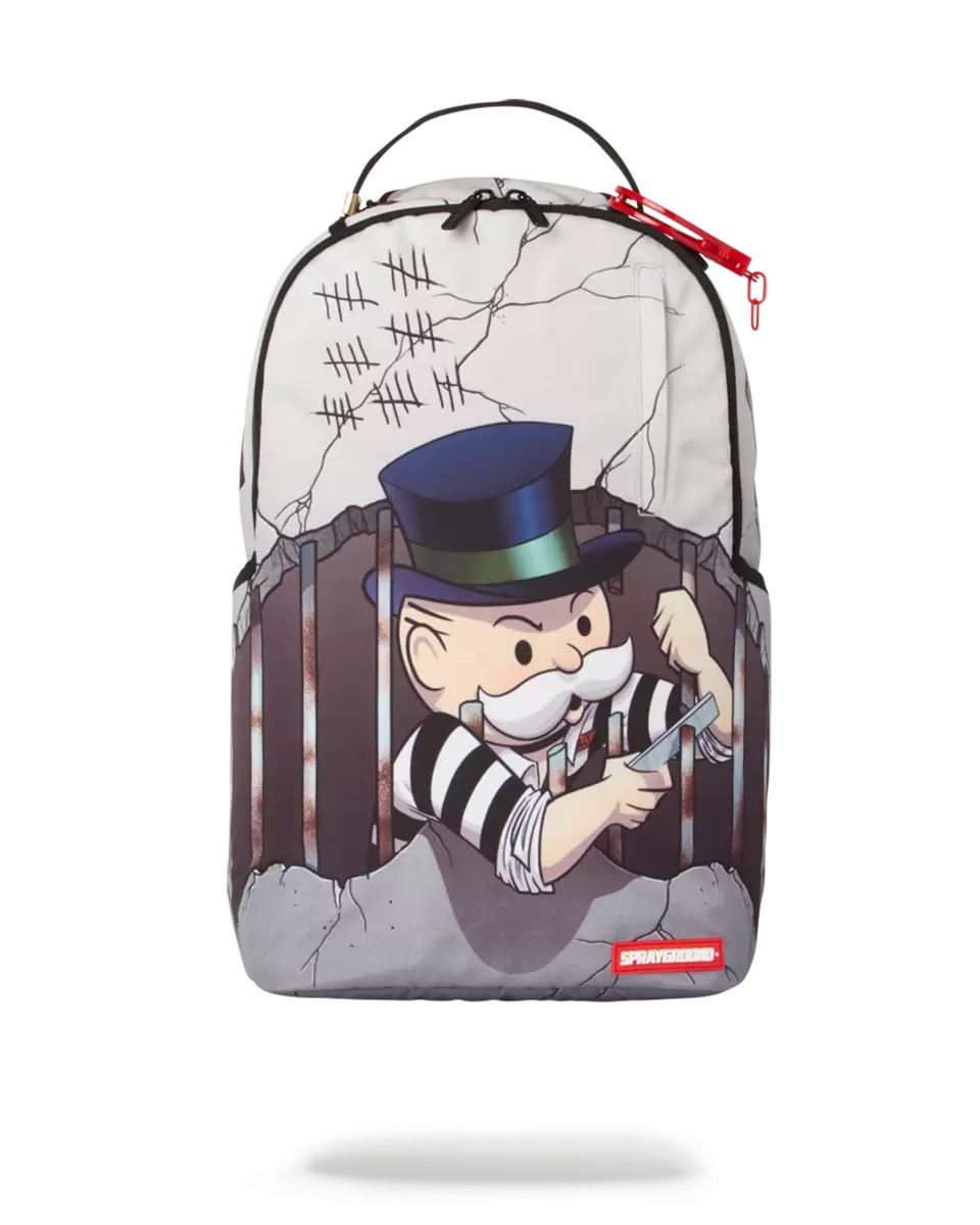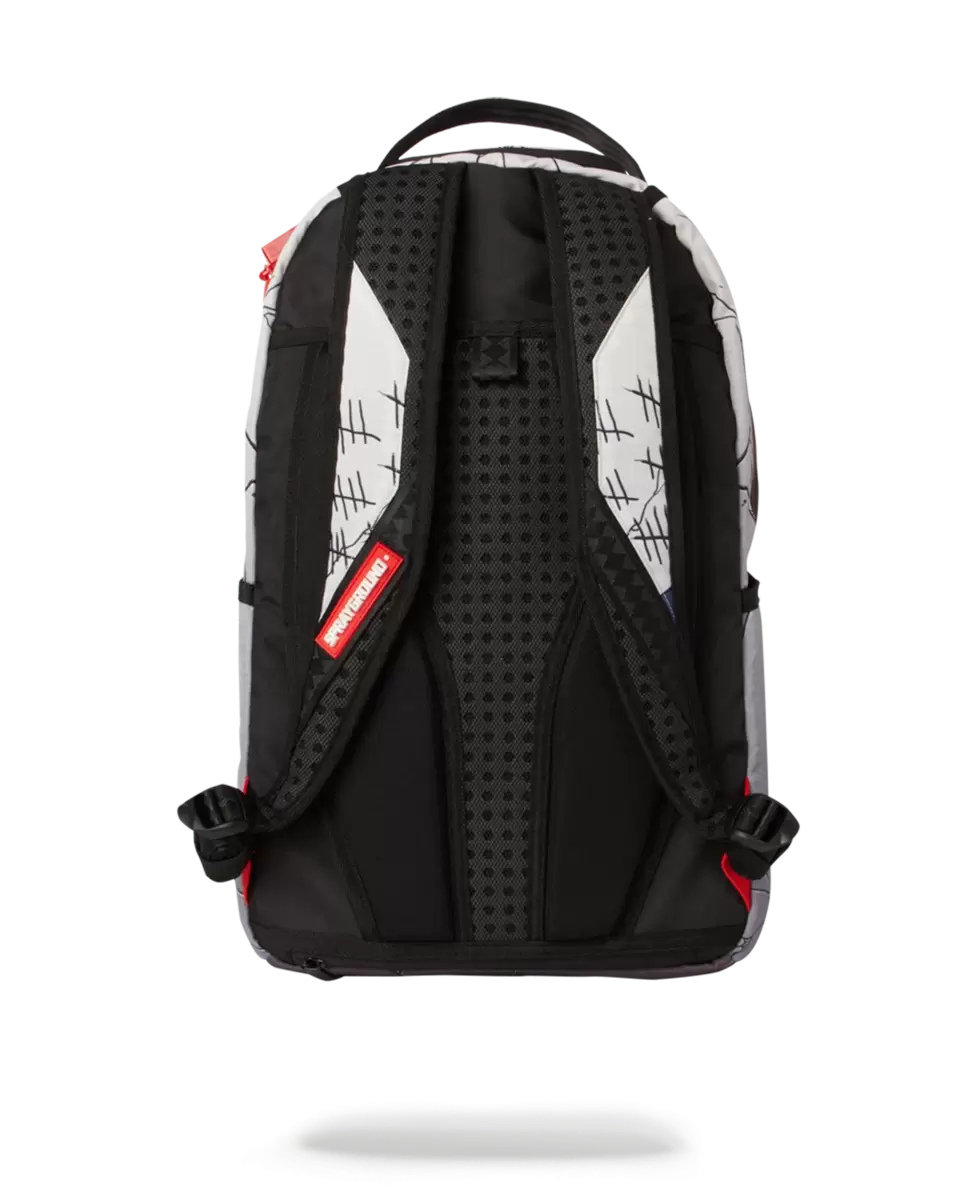 Abmessungen: 45,7 x 15,2 x 29,2 cm Vordertasche mit Reißverschluss Seitentaschen Reißverschlusstasche Separates Brillenfach aus Velours Ergonomische Netzrückenpolsterung Verstellbare Gurte für individuelle Anpassung Schwarze Reißverschlüsse mit Metallbeschlägen Abnehmbarer Schlüsselanhänger mit Handschellen-Motiv Metallplakette „Sprayground Authentic“ Durchschubtasche am Rücken zur Befestigung am Handgepäck für freie Hände