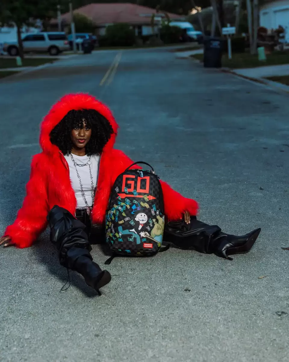 Abmessungen: 45,7 x 15,2 x 29,2 cm Vordertasche mit Reißverschluss Seitentaschen Reißverschlusstasche Separates Brillenfach aus Velours Ergonomische Netzrückenpolsterung Verstellbare Riemen für individuelle Anpassung Goldfarbene Reißverschlüsse mit Metallbeschlägen Metall-Badge „Sprayground Authentic“ Durchschubtasche auf der Rückseite zur Befestigung am Handgepäck für freie Hände
