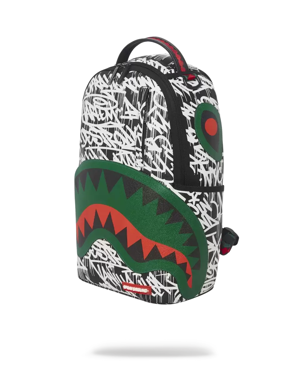 Abmessungen: 45,7 x 15,2 x 29,2 cm Vordertasche mit Reißverschluss Seitentaschen Reißverschlusstasche Separates Brillenfach aus Velours Ergonomische Netzrückenpolsterung Verstellbare Riemen für individuelle Anpassung Goldfarbene Reißverschlüsse mit Metallbeschlägen Metallplakette „Sprayground Authentic“ Durchschubtasche auf der Rückseite zur Befestigung am Handgepäck für freie Hände