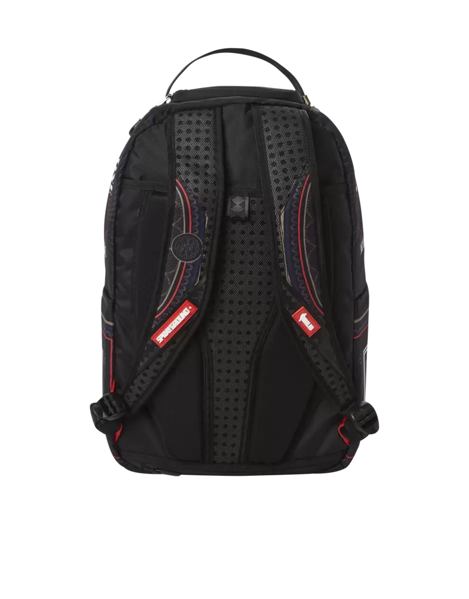 Abmessungen: 45,7 x 15,2 x 29,2 cm Vordertasche mit Reißverschluss Seitentaschen Reißverschlusstasche Separates Brillenfach aus Velours Ergonomische Netzrückenpolsterung Verstellbare Gurte für individuelle Anpassung Silberne Reißverschlüsse mit Metallbeschlägen Metall-Badge „Sprayground Authentic“ Durchschubschlaufe am Rücken zur Befestigung am Handgepäck für freie Hände