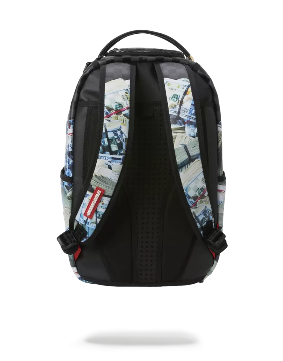 Abmessungen: 45,7 x 15,2 x 29,2 cm Vordertasche mit Reißverschluss Seitentaschen Reißverschlusstasche Separates Brillenfach aus Velours Ergonomische Netzrückenpolsterung Verstellbare Gurte für individuelle Anpassung Reißverschlüsse in Gunmetal-Optik mit Metallbeschlägen Metallplakette „Sprayground Authentic“ Durchschubschlaufe an der Rückseite zur Befestigung am Handgepäck für freie Hände