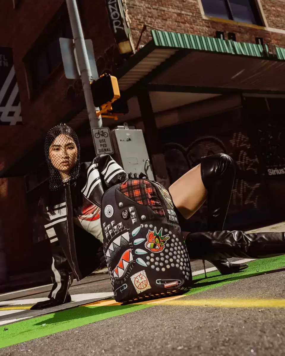 Abmessungen: 45,7 x 15,2 x 29,2 cm (18″ x 6″ x 11,5″) Vordertasche mit Reißverschluss Seitentaschen Reißverschlusstasche Separates Brillenfach aus Velours Ergonomische Netzrückenpolsterung Verstellbare Gurte für individuelle Anpassung Goldfarbene Reißverschlüsse mit Metallbeschlägen Metall-Badge „Sprayground Authentic“ Durchschubtasche am Rücken zur Befestigung am Handgepäck für freie Hände