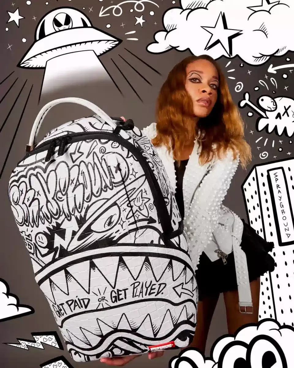 Geprägtes Karomuster. Maße: 45,7 x 15,2 x 29,2 cm. Vordertasche mit Reißverschluss. Seitentaschen. Reißverschlusstasche. Separates Brillenfach aus Velours. Ergonomische Netzrückenpolsterung. Verstellbare Riemen für individuelle Anpassung. Goldfarbene Reißverschlüsse mit Metallbeschlägen. Metallplakette „Sprayground Authentic“. Durchschubtasche am Rücken zur Befestigung am Handgepäck für freie Hände.