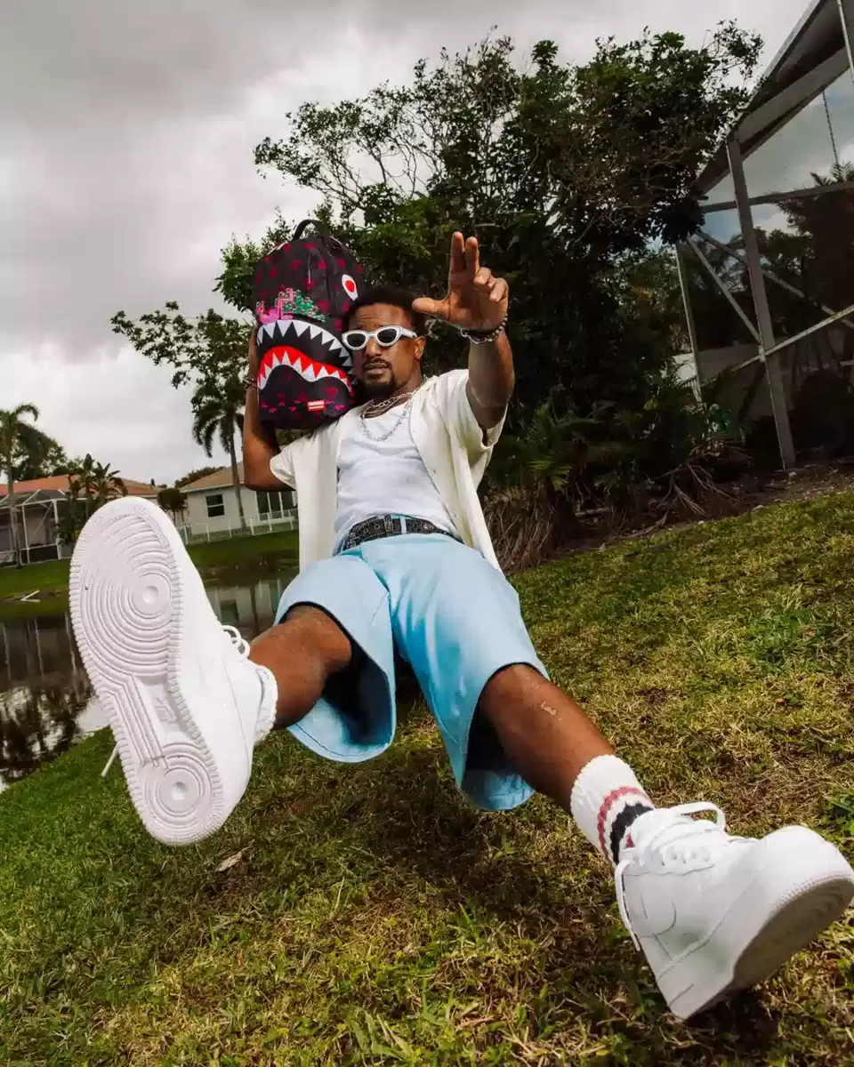 Abmessungen: 45,7 x 15,2 x 29,2 cm (18″ x 6″ x 11,5″) Vordertasche mit Reißverschluss Seitentaschen Reißverschlusstasche Separates Brillenfach aus Velours Ergonomische Netzrückenpolsterung Verstellbare Gurte für individuelle Anpassung Goldfarbene Reißverschlüsse mit Metallbeschlägen Metall-Badge „Sprayground Authentic“ Durchschubtasche auf der Rückseite zur Befestigung am Handgepäck für freie Hände
