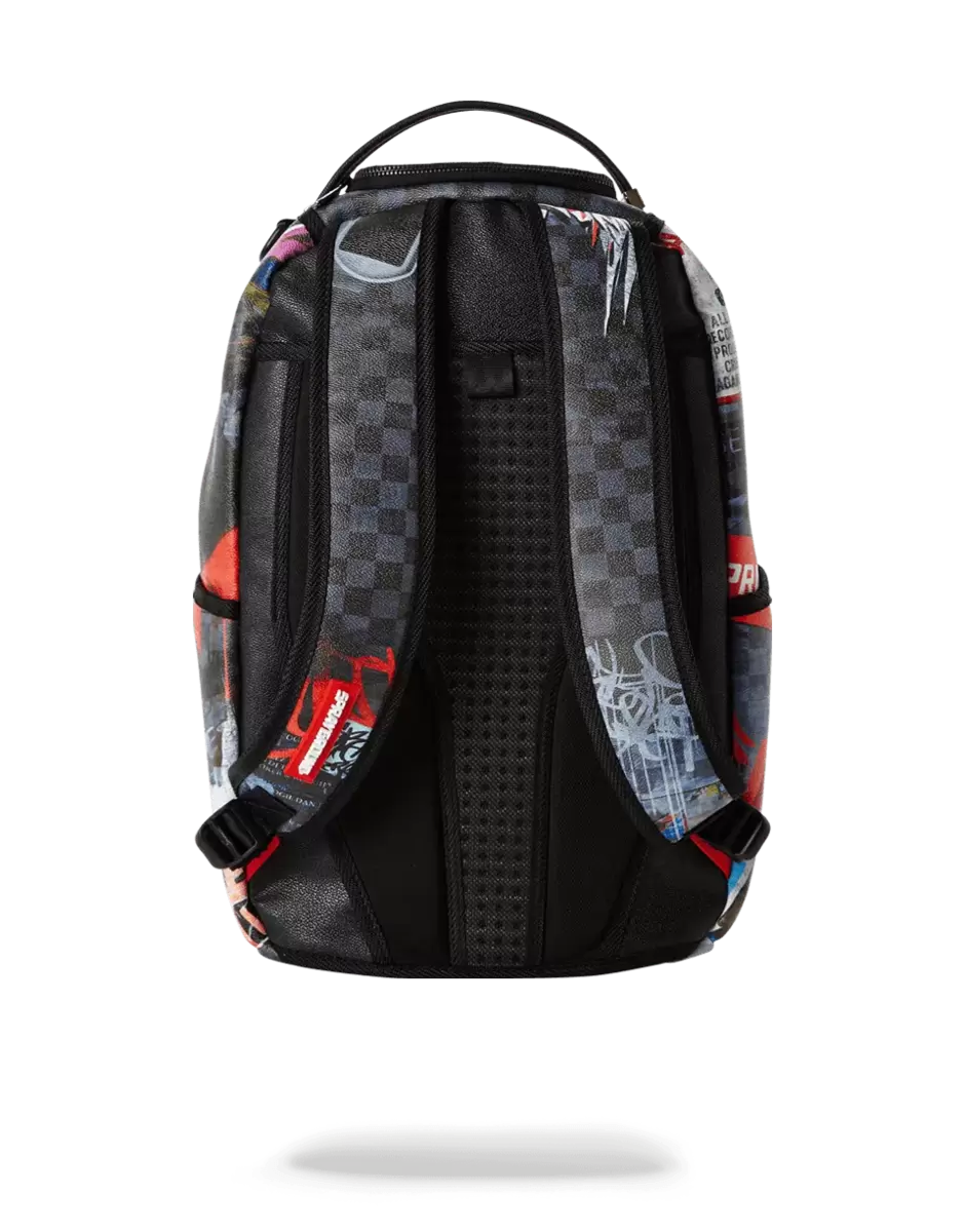 Abmessungen: 45,7 x 15,2 x 29,2 cm Veganes Leder Vordertasche mit Reißverschluss Seitentaschen Reißverschlusstasche Ergonomische Netzrückenpolsterung Verstellbare Riemen für individuelle Anpassung Nylon-Reißverschlüsse mit Metallbeschlägen Gummi-Badge „Sprayground Authentic“ Durchschubtasche auf der Rückseite zur Befestigung an Handgepäck für freie Hände