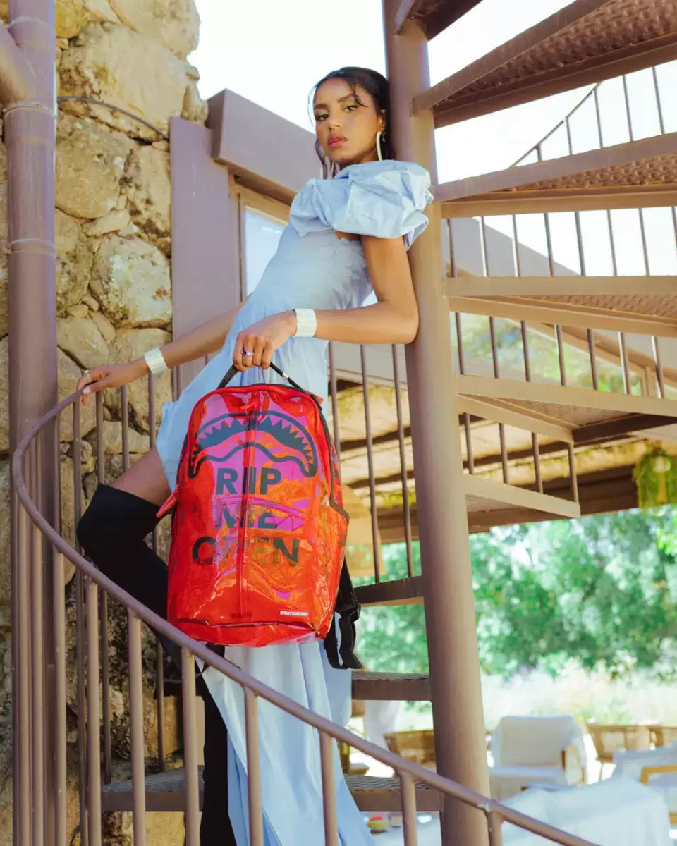 Abmessungen: 45,7 x 15,2 x 29,2 cm Vordertasche mit Reißverschluss Seitentaschen Reißverschlusstasche Separates Brillenfach aus Velours Ergonomische Netzrückenpolsterung Verstellbare Gurte für individuelle Anpassung Goldfarbene Reißverschlüsse mit Metallbeschlägen Metallplakette „Sprayground Authentic“ Durchschubtasche auf der Rückseite zur Befestigung am Handgepäck für freie Hände
