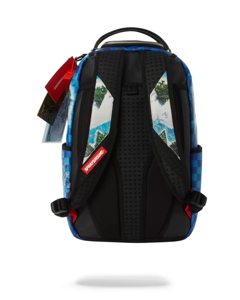 Abmessungen: 45,7 x 15,2 x 29,2 cm Vordertasche mit Reißverschluss Seitentaschen Reißverschlusstasche Separates Brillenfach aus Velours Ergonomische Netzrückenpolsterung Verstellbare Riemen für individuelle Anpassung Silberne Reißverschlüsse mit Metallbeschlägen Metall-Badge „Sprayground Authentic“ Durchschubschlaufe auf der Rückseite zur Befestigung am Handgepäck für freie Hände