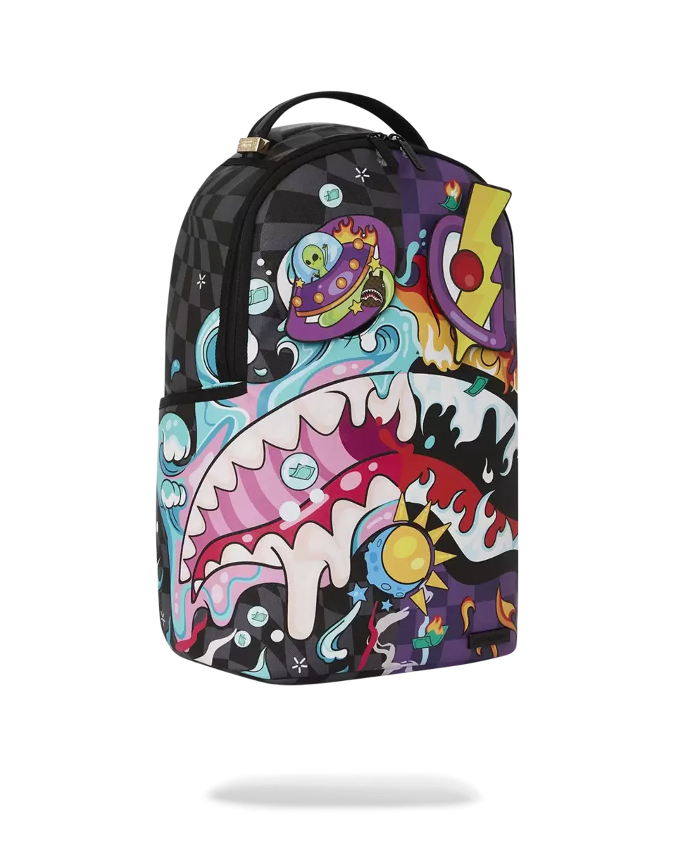 Abmessungen: 45,7 x 15,2 x 29,2 cm Vordertasche mit Reißverschluss Seitentaschen Reißverschlusstasche Separates Brillenfach aus Velours Ergonomische Netzrückenpolsterung Verstellbare Riemen für individuelle Anpassung Goldfarbene Reißverschlüsse mit Metallbeschlägen Metallplakette „Sprayground Authentic“ Durchschubtasche am Rücken zur Befestigung am Handgepäck für freie Hände