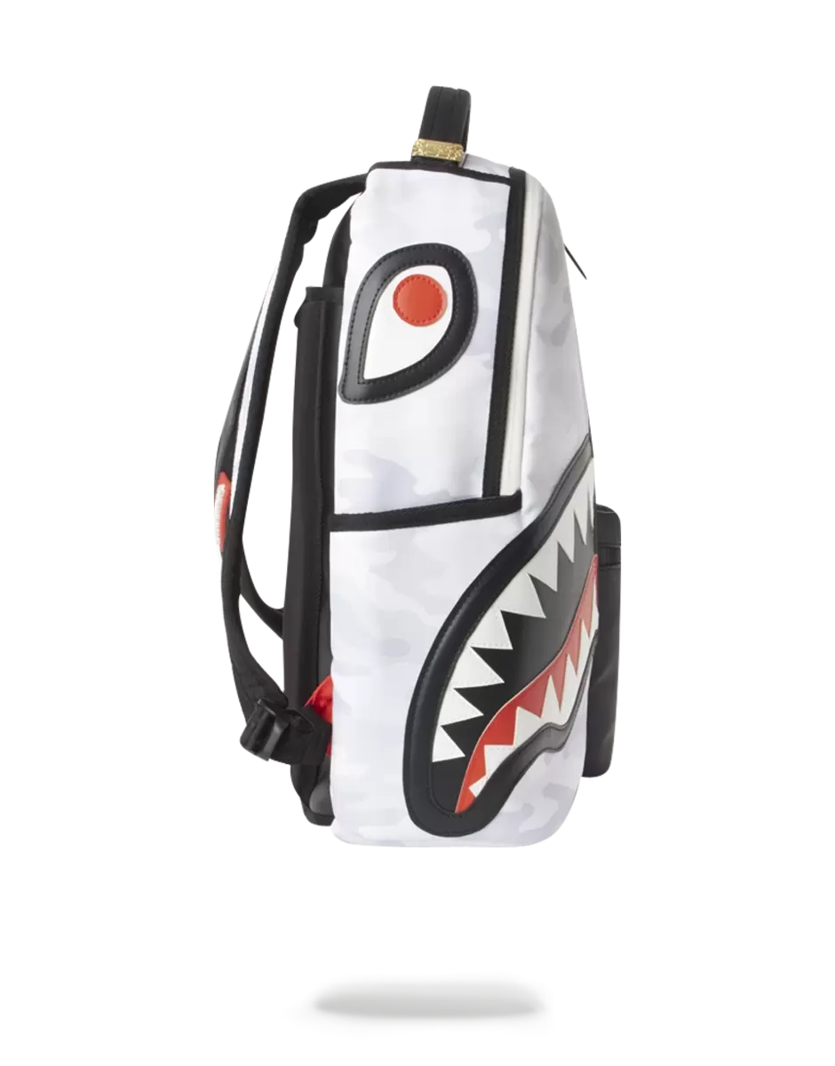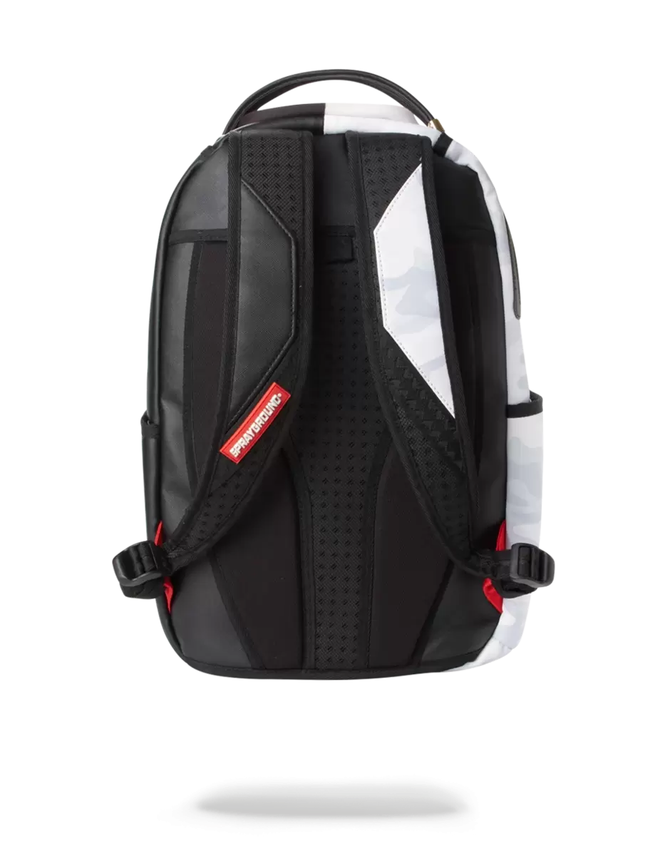 Abmessungen: 45,7 x 15,2 x 29,2 cm Vordertasche mit Reißverschluss Seitentaschen Reißverschlusstasche Separates Brillenfach aus Velours Ergonomische Netzrückenpolsterung Verstellbare Riemen für individuelle Anpassung Schwarze und weiße Reißverschlüsse mit Metallbeschlägen Metallplakette „Sprayground Authentic“ Durchschubtasche auf der Rückseite zur Befestigung am Handgepäck für freie Hände