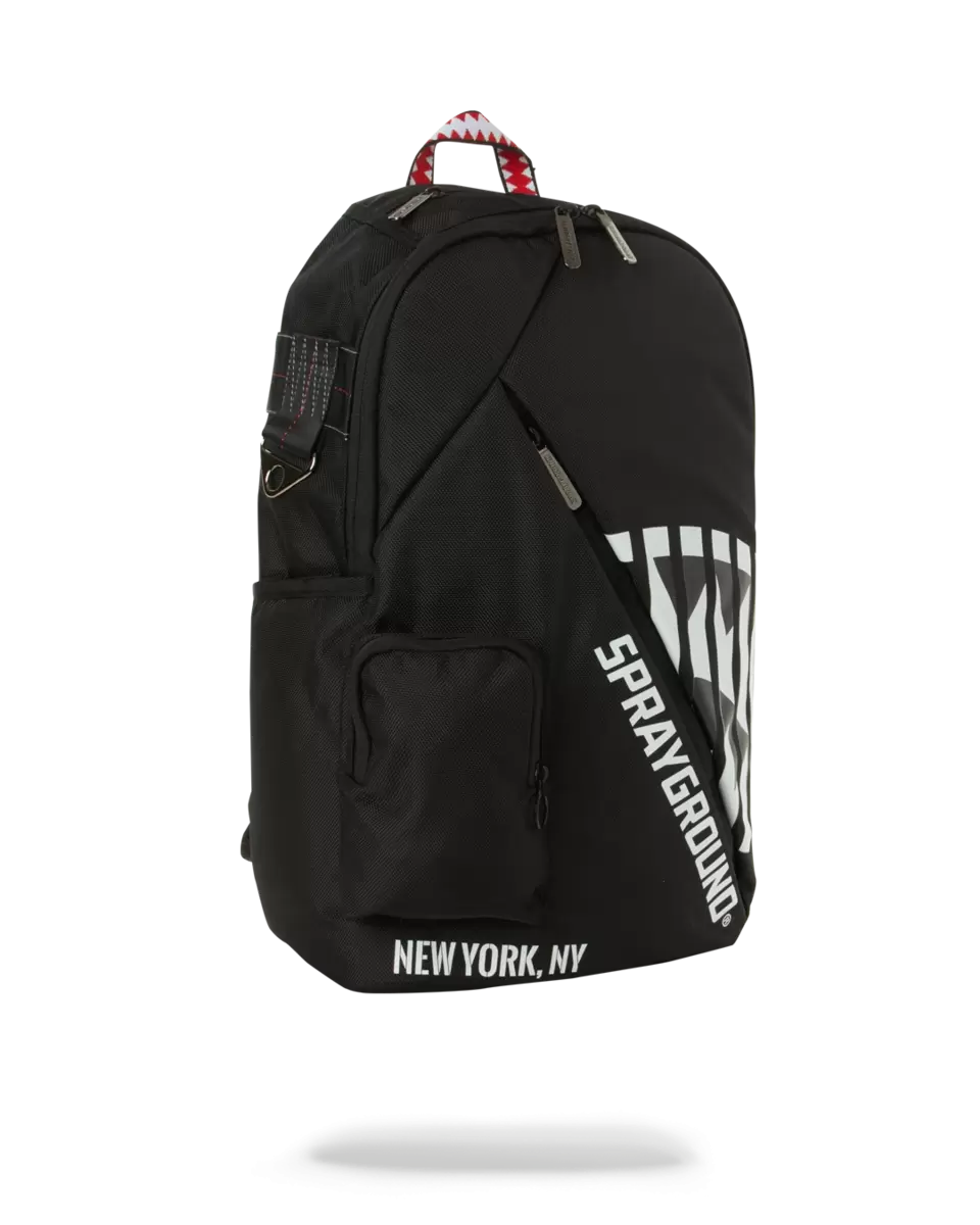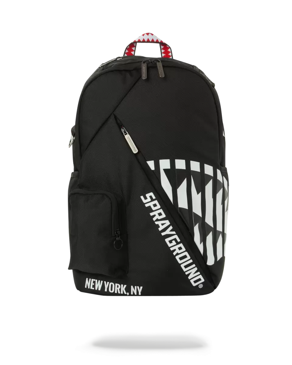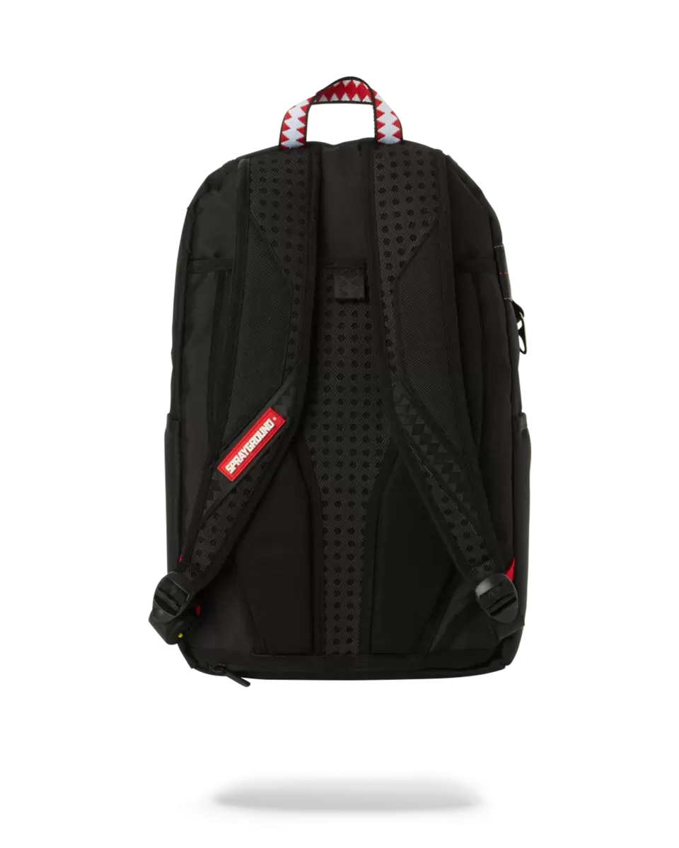Abmessungen: 45,7 x 15,2 x 29,2 cm Vordertasche mit Reißverschluss Seitentaschen Reißverschlusstasche Separates Brillenfach aus Velours Ergonomische Netzrückenpolsterung Verstellbare Gurte für individuelle Anpassung Reißverschlüsse in Gunmetal-Optik mit Metallbeschlägen Metallplakette „Sprayground Authentic“ Durchschubschlaufe am Rücken zur Befestigung am Handgepäck für freie Hände