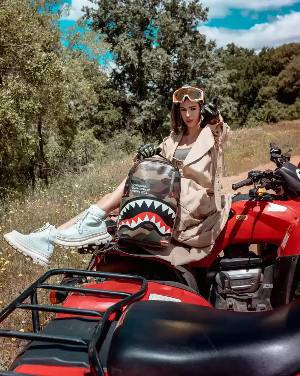 Abmessungen: 45,7 x 15,2 x 29,2 cm Vordertasche mit Reißverschluss Seitentaschen Reißverschlusstasche Separates Brillenfach aus Velours Ergonomische Netzrückenpolsterung Verstellbare Riemen für individuelle Anpassung Goldfarbene Reißverschlüsse mit Metallbeschlägen Metallplakette „Sprayground Authentic“ Durchschubschlaufe am Rücken zur Befestigung am Handgepäck für freie Hände