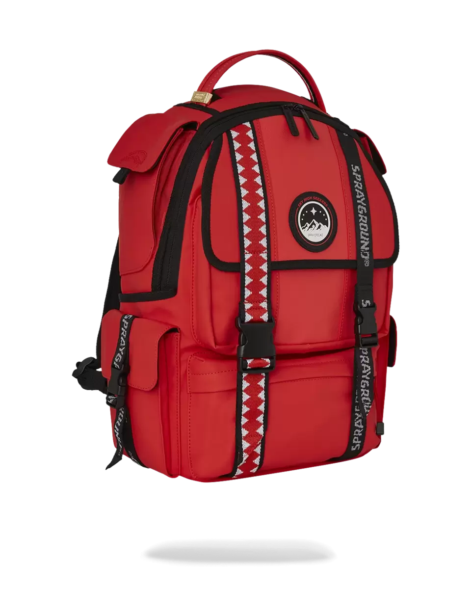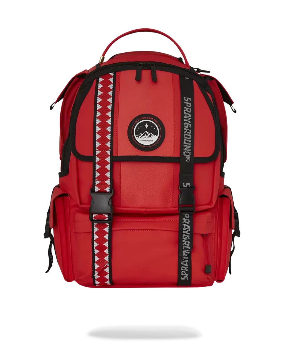 SKY HIGH SEEKERS EMBLEMRUBBERIZED PVCGEWICKELTE RÜCKSEITE 3 VERSCHIEDENE GEWEBTE GURTE DETAILSTOP-TASCHE MIT NETZ-KLETTVERSCHLUSS DIE BODENTASCHE HAT EINEN VERSTECKTEN REISSVERSCHLUSS 4