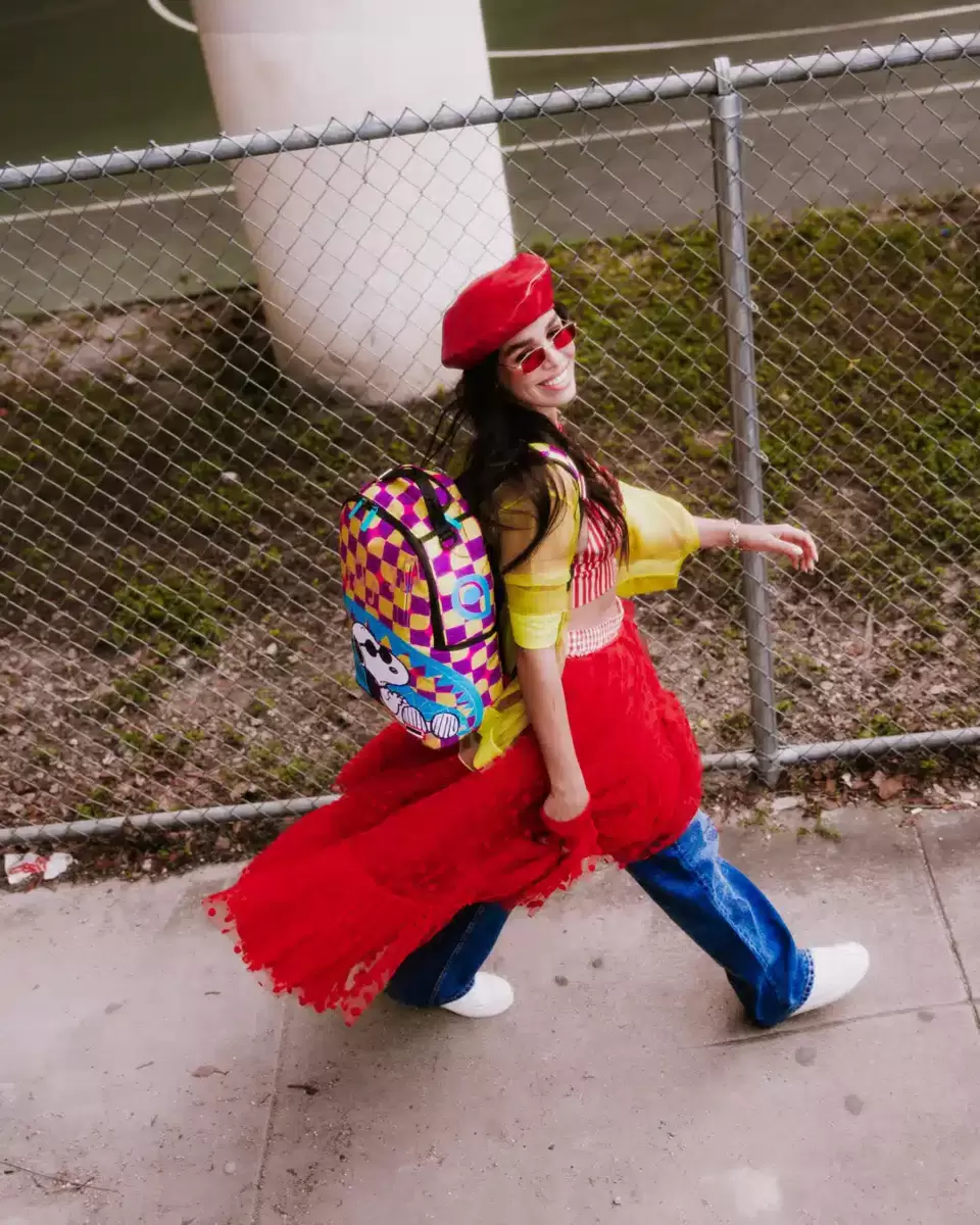 Abmessungen: 45,7 x 15,2 x 29,2 cm (18″ x 6″ x 11,5″) Vordertasche mit Reißverschluss Seitentaschen Reißverschlusstasche Separates Brillenfach aus Velours Ergonomische Netzrückenpolsterung Verstellbare Gurte für individuelle Anpassung Goldfarbene Reißverschlüsse mit Metallbeschlägen Metall-Badge „Sprayground Authentic“ Durchschubtasche auf der Rückseite zur Befestigung am Handgepäck für freie Hände