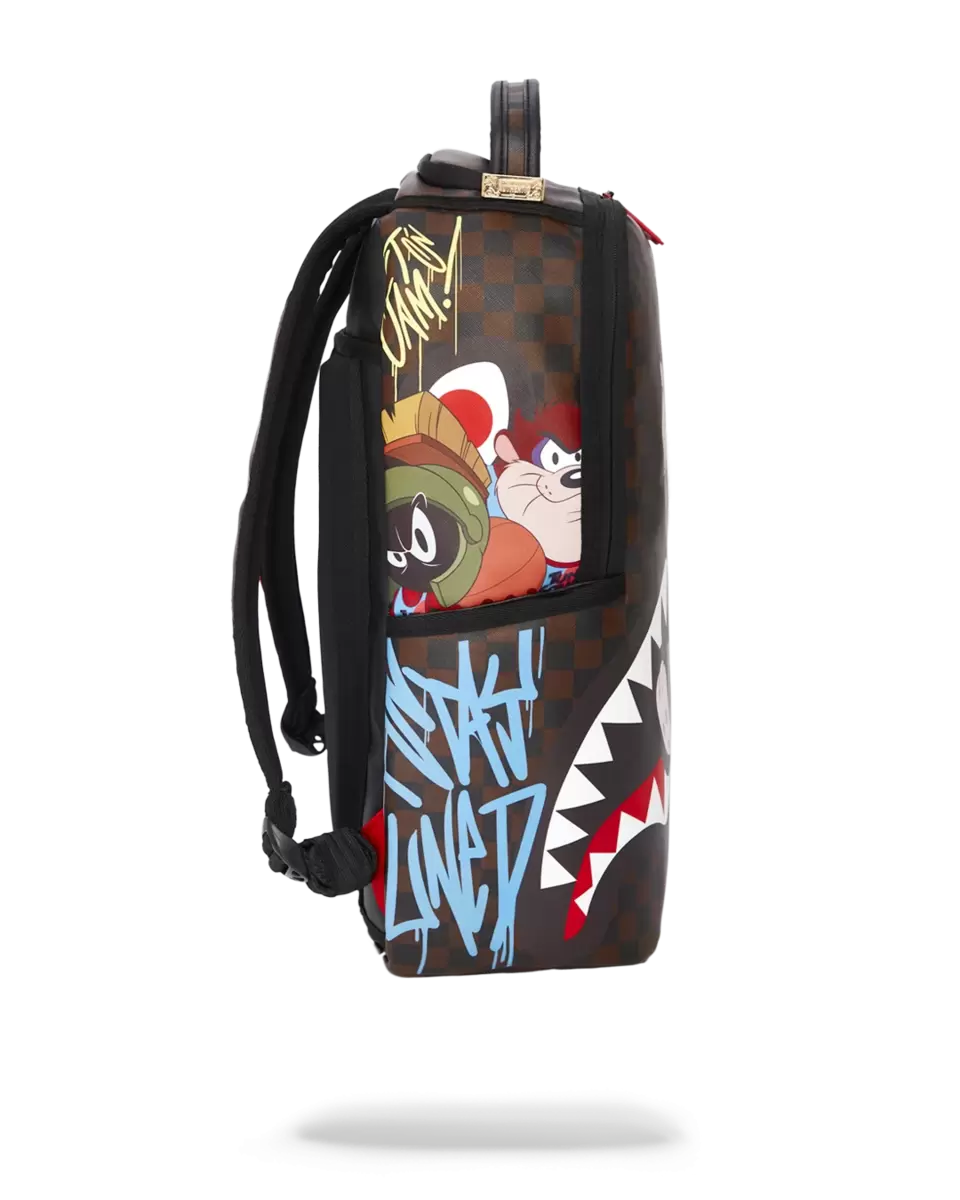Abmessungen: 45,7 x 15,2 x 29,2 cm Vordertasche mit Reißverschluss Seitentaschen Reißverschlusstasche Separates Brillenfach aus Velours Ergonomische Netzrückenpolsterung Verstellbare Riemen für individuelle Anpassung Rote Reißverschlüsse mit Metallbeschlägen Metall-Badge „Sprayground Authentic“ Durchschubtasche am Rücken zur Befestigung am Handgepäck für freie Hände