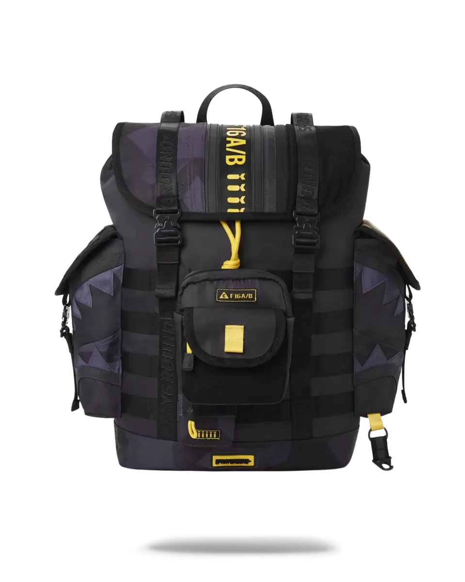 Material aus Polyester-Satin mit einfarbigen Camouflage-Details und kontrastierenden gelben Besätzen