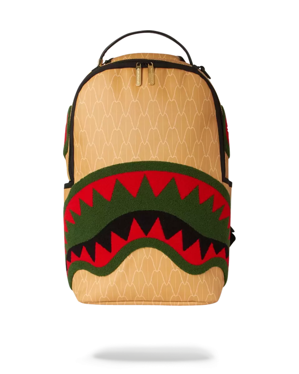Abmessungen: 45,7 x 15,2 x 29,2 cm Vordertasche mit Reißverschluss Seitentaschen Reißverschlusstasche Separates Brillenfach aus Velours Ergonomische Netzrückenpolsterung Verstellbare Gurte für individuelle Anpassung Goldfarbene Reißverschlüsse mit Metallbeschlägen Metallplakette „Sprayground Authentic“ Durchschubschlaufe auf der Rückseite zur Befestigung am Handgepäck für freie Hände