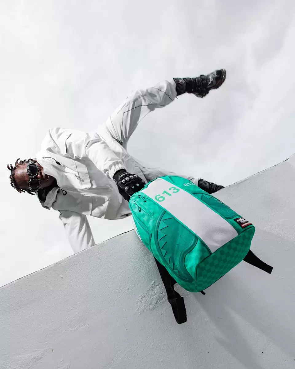 Abmessungen: 45,7 x 15,2 x 29,2 cm (18″ x 6″ x 11,5″) Vordertasche mit Reißverschluss Seitentaschen Reißverschlusstasche Separates Brillenfach aus Velours Ergonomische Netzrückenpolsterung Verstellbare Riemen für individuelle Anpassung Goldfarbene Reißverschlüsse mit Metallbeschlägen Metall-Badge „Sprayground Authentic“ Durchschubtasche am Rücken zur Befestigung am Handgepäck für freie Hände