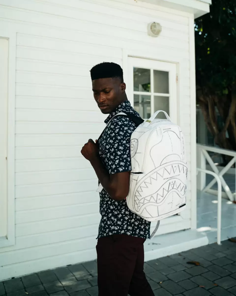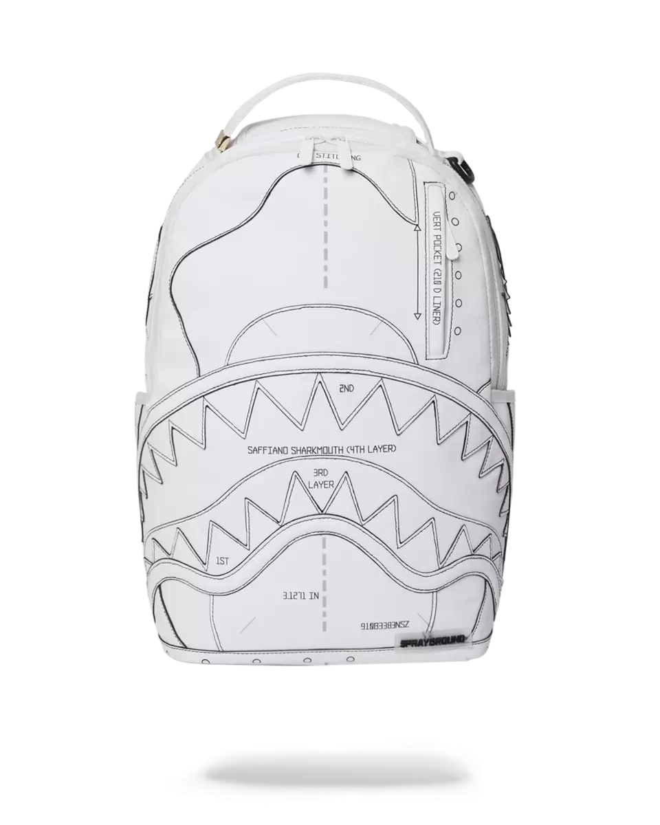 Abmessungen: 45,7 x 15,2 x 29,2 cm Vordertasche mit Reißverschluss Seitentaschen Reißverschlusstasche Separates Brillenfach aus Velours Ergonomische Netzrückenpolsterung Verstellbare Gurte für individuelle Anpassung Reißverschlüsse in Gunmetal-Optik mit Metallbeschlägen Metallplakette „Sprayground Authentic“ Durchschubschlaufe an der Rückseite zur Befestigung am Handgepäck für freie Hände