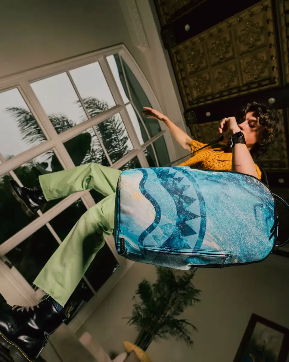 Abmessungen: 45,7 x 15,2 x 29,2 cm Vordertasche mit Reißverschluss Seitentaschen Reißverschlusstasche Separates Brillenfach aus Velours Ergonomische Netzrückenpolsterung Verstellbare Riemen für individuelle Anpassung Goldfarbene Reißverschlüsse mit Metallbeschlägen Metall-Badge „Sprayground Authentic“ Durchschubschlaufe am Rücken zur Befestigung am Handgepäck für freie Hände