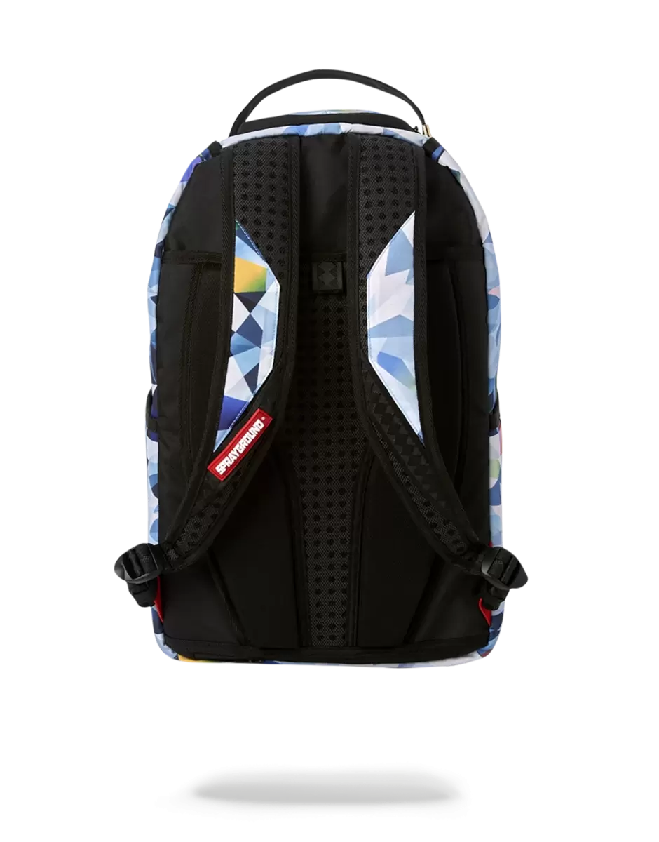 Abmessungen: 45,7 x 15,2 x 29,2 cm Vordertasche mit Reißverschluss Seitentaschen Reißverschlusstasche Separates Brillenfach aus Velours Ergonomische Netzrückenpolsterung Verstellbare Gurte für individuelle Anpassung Silberne Reißverschlüsse mit Metallbeschlägen Metall-Badge „Sprayground Authentic“ Durchschubschlaufe am Rücken zur Befestigung am Handgepäck für freie Hände