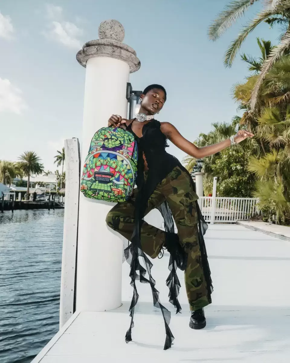 Abmessungen: 45,7 x 15,2 x 29,2 cm (18″ x 6″ x 11,5″) Vordertasche mit Reißverschluss Seitentaschen Reißverschlusstasche Separates Brillenfach aus Velours Ergonomische Netzrückenpolsterung Verstellbare Gurte für individuelle Anpassung Goldfarbene Reißverschlüsse mit Metallbeschlägen Metall-Badge „Sprayground Authentic“ Durchschubtasche auf der Rückseite zur Befestigung am Handgepäck für freie Hände