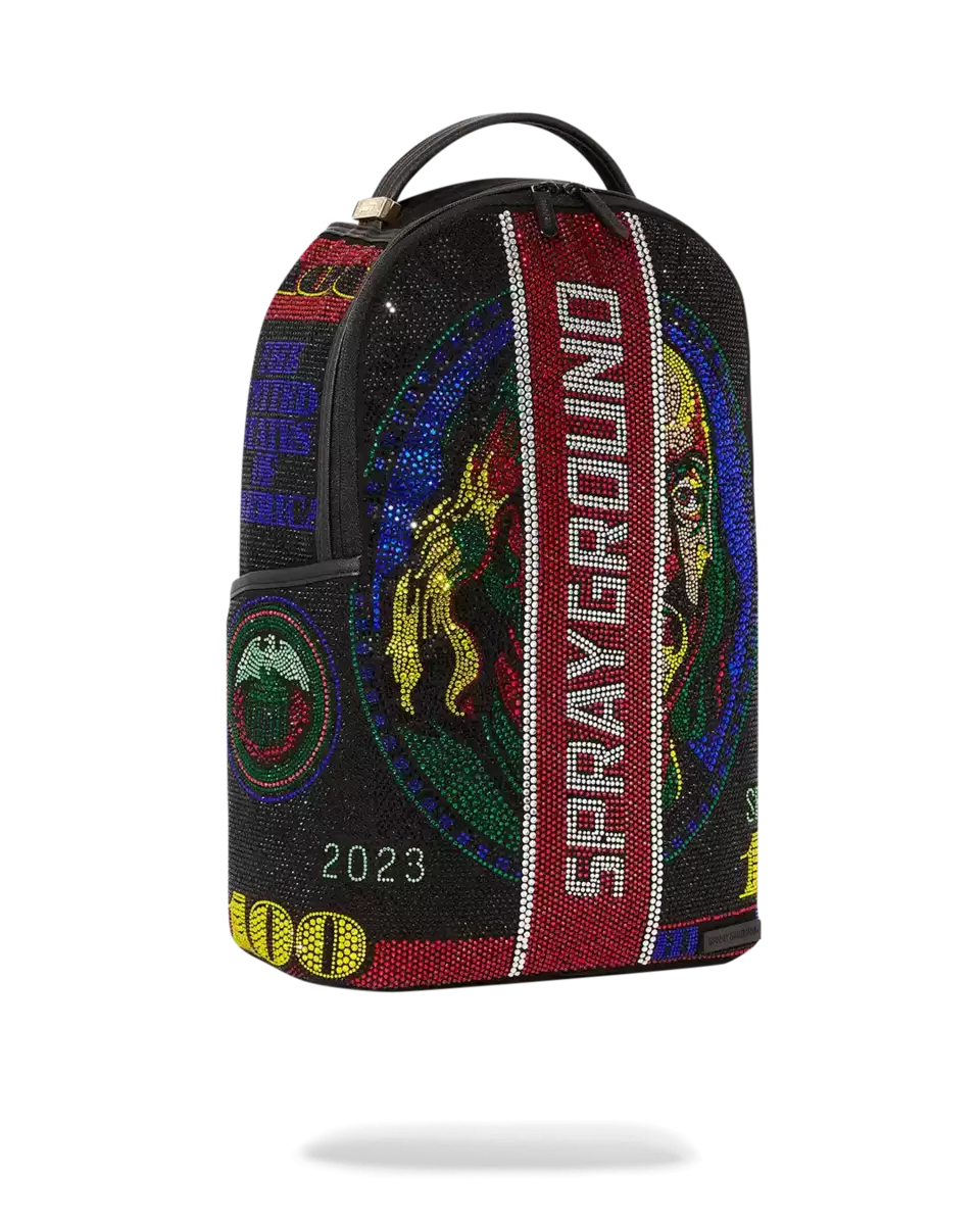 Abmessungen: 45,7 x 15,2 x 29,2 cm Vordertasche mit Reißverschluss Seitentaschen Reißverschlusstasche Separates Brillenfach aus Velours Ergonomische Rückenpolsterung aus Netzgewebe Verstellbare Gurte für individuelle Anpassung Goldfarbene Reißverschlüsse mit Metallbeschlägen Metallplakette „Sprayground Authentic“ Durchschubschlaufe am Rücken zur Befestigung am Handgepäck für freie Hände