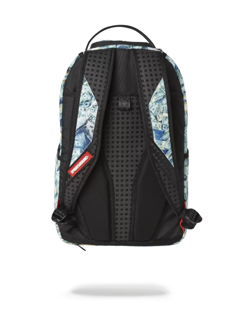 Abmessungen: 45,7 x 15,2 x 29,2 cm Vordertasche mit Reißverschluss Seitentaschen Reißverschlusstasche Separates Brillenfach aus Velours Ergonomische Netzrückenpolsterung Verstellbare Gurte für individuelle Anpassung Silberne Reißverschlüsse mit Metallbeschlägen Metall-Badge „Sprayground Authentic“ Durchschubschlaufe am Rücken zur Befestigung am Handgepäck für freie Hände