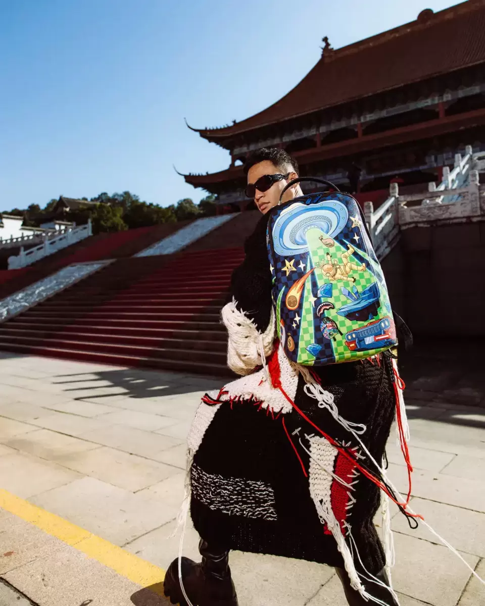 Abmessungen: 45,7 x 15,2 x 29,2 cm Vordertasche mit Reißverschluss Seitentaschen Reißverschlusstasche Separates Brillenfach aus Velours Ergonomische Netzrückenpolsterung Verstellbare Riemen für individuelle Anpassung Goldfarbene Reißverschlüsse mit Metallbeschlägen Metall-Badge „Sprayground Authentic“ Durchschubschlaufe am Rücken zur Befestigung am Handgepäck für freie Hände