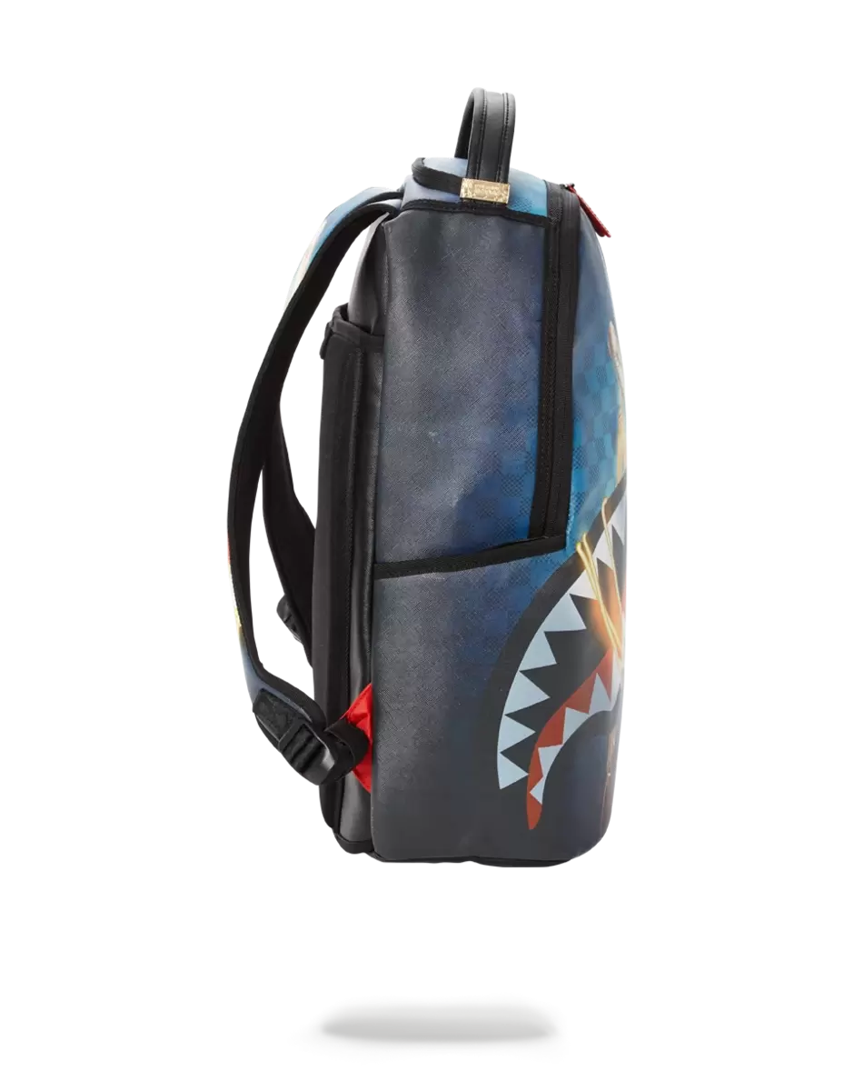 Abmessungen: 45,7 x 15,2 x 29,2 cm Vordertasche mit Reißverschluss Seitentaschen Reißverschlusstasche Separates Brillenfach aus Velours Ergonomische Netzrückenpolsterung Verstellbare Riemen für individuelle Anpassung Rote Reißverschlüsse mit Metallbeschlägen Metallplakette „Sprayground Authentic“ Durchschubtasche auf der Rückseite zur Befestigung am Handgepäck für freie Hände