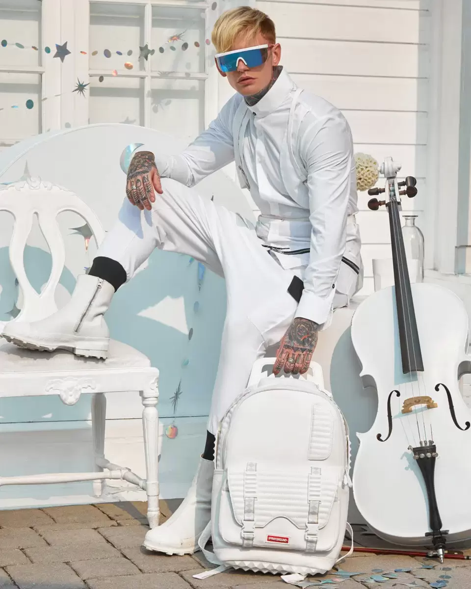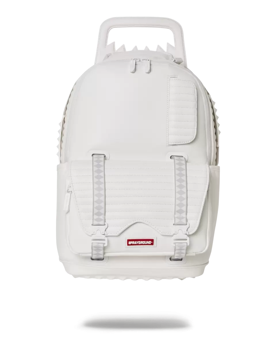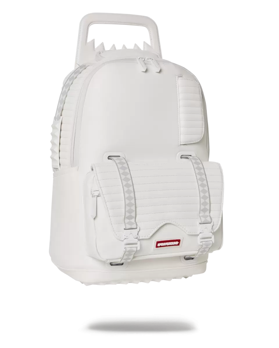 Vordertasche mit Reißverschluss, Seitentaschen, Reißverschlusstasche, separates Sonnenbrillenfach aus Velours, ergonomische Netzrückenpolsterung, verstellbare Gurte für individuelle Anpassung, goldene Reißverschlüsse mit Metallbeschlägen, Metallplakette „Sprayground Authentic“, durchziehbare Schlaufe am Rücken zur Befestigung am Handgepäck für freie Hände