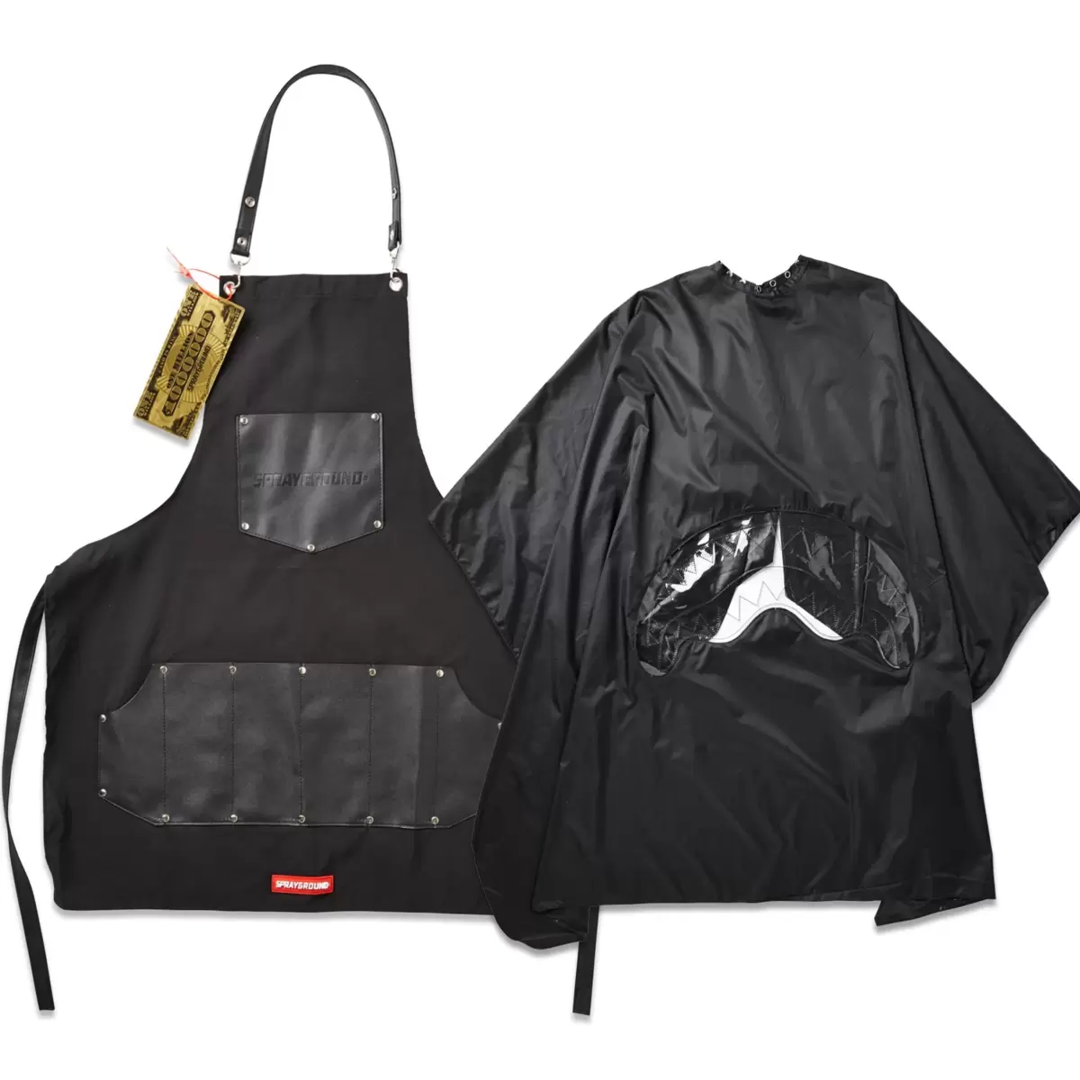 Nicht die übliche Friseurschürze! Jedes Detail wurde speziell für dich entworfen! Mit der Sprayground Barber Schürze setzt du ein modisches Statement auf deinem Weg zur Arbeit. Sie verfügt über Taschen aus veganem Leder mit Nieten, einen verstellbaren Bund und – für deine Kunden – einen Umhang mit durchsichtigem Haifischmaul, damit sie immer auf ihrem Handy die neuesten Nachrichten checken können. Alle werden in limitierter Auflage produziert und nie wieder hergestellt.
