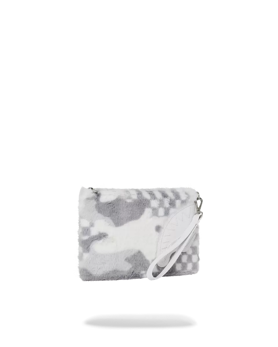 100 % Kunstleder, 100 % Polyester, Kunstpelz bedruckt mit unseren individuellen Karo-/Camouflage-Mustern. Wandelbare Clutch „Pouchette“ mit abnehmbarem Handgelenkriemen und Henkel.