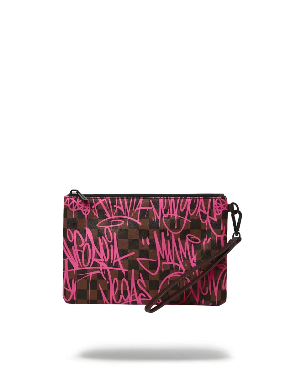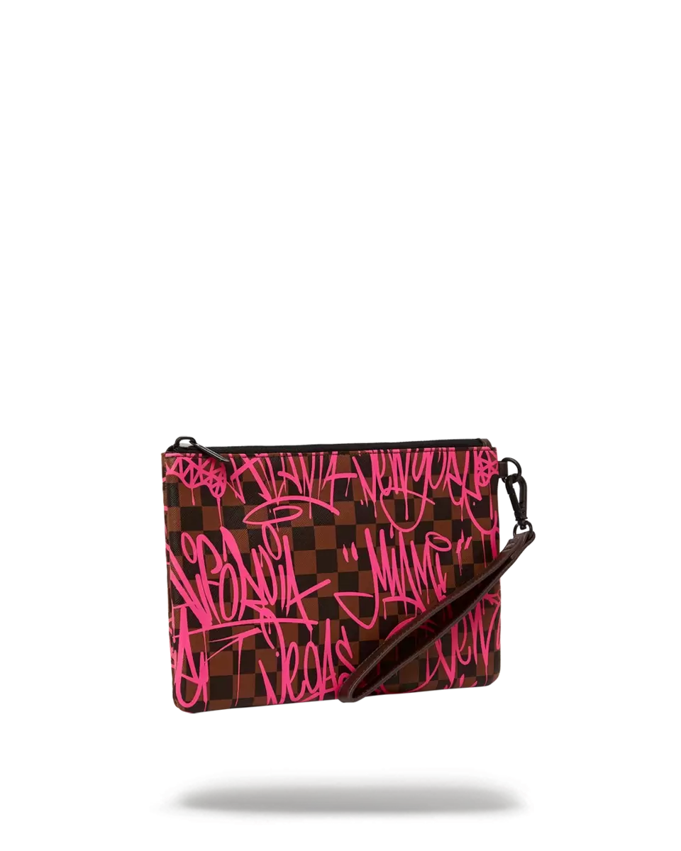 100 % KUNSTLEDER Wandelbare Clutch „Pouchette“ mit abnehmbarem Handgelenkriemen, Griff an der Vorderseite, Reißverschluss, 1 Innentasche (7 x 10 x 0,25 Zoll)