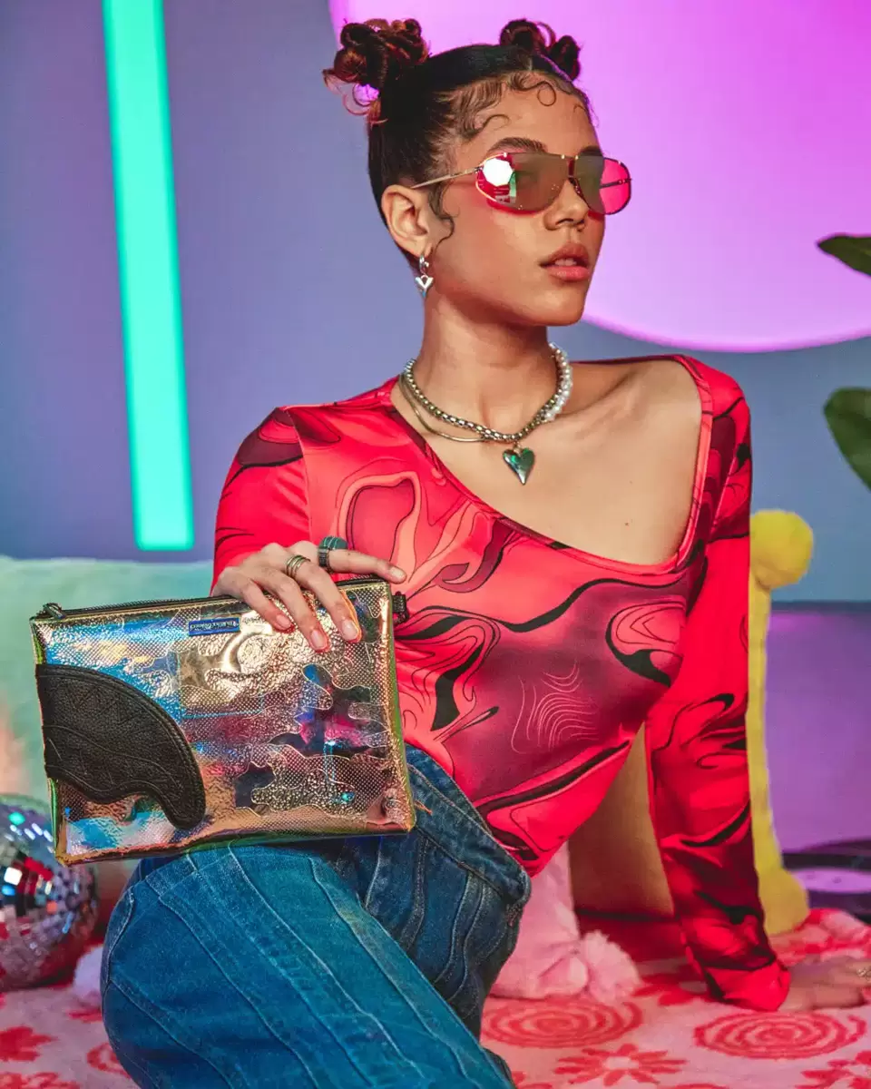 Verwandelbare Clutch „Pouchette“: Etui mit abnehmbarer Handschlaufe, Tragegriff an der Vorderseite, Reißverschluss