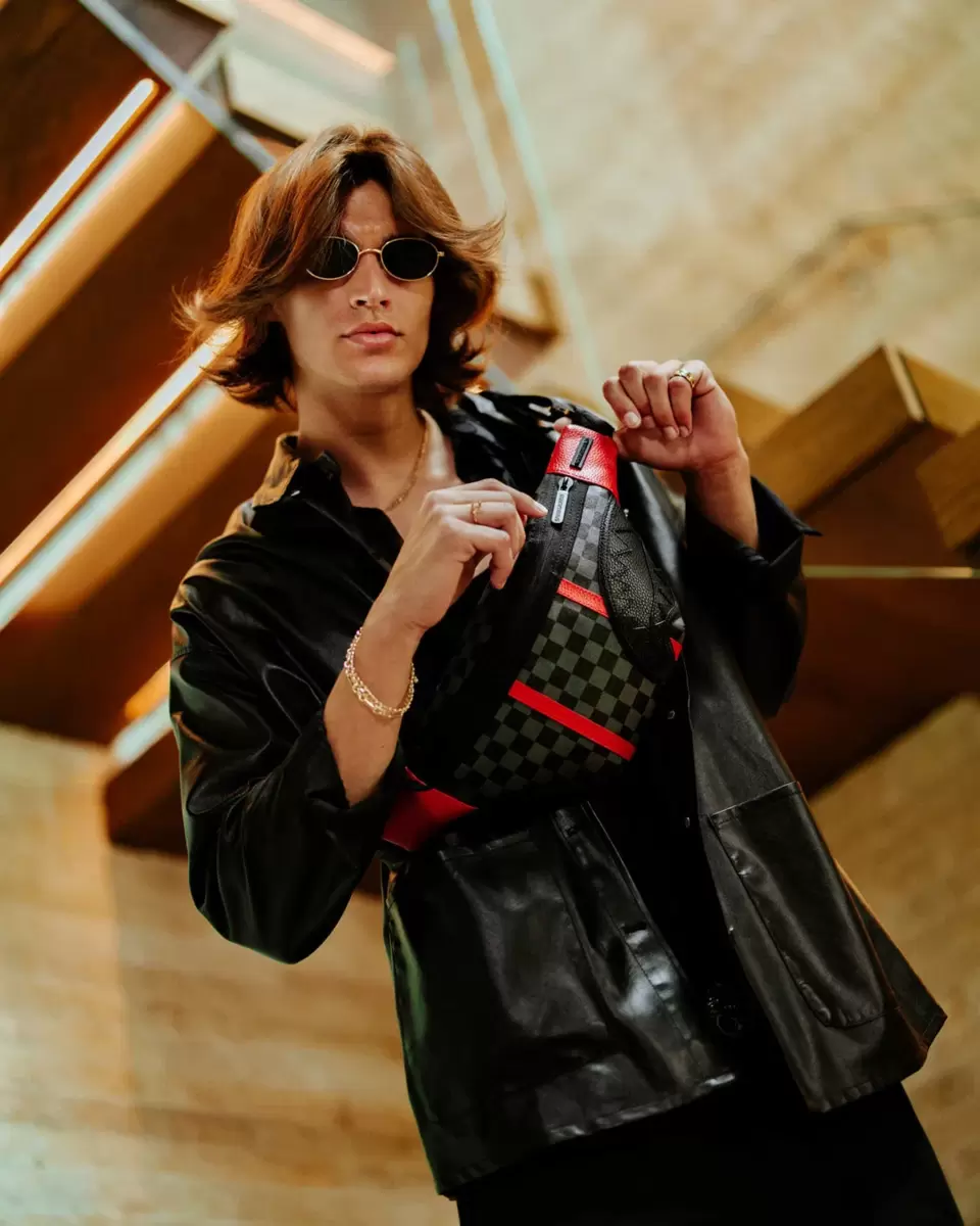 Abmessungen: 17,8 x 3,8 x 38,1 cm Verstellbarer, doppelseitiger VSM-Gurt für individuelle Anpassung Rote Reißverschlusstasche mit Metallschnalle