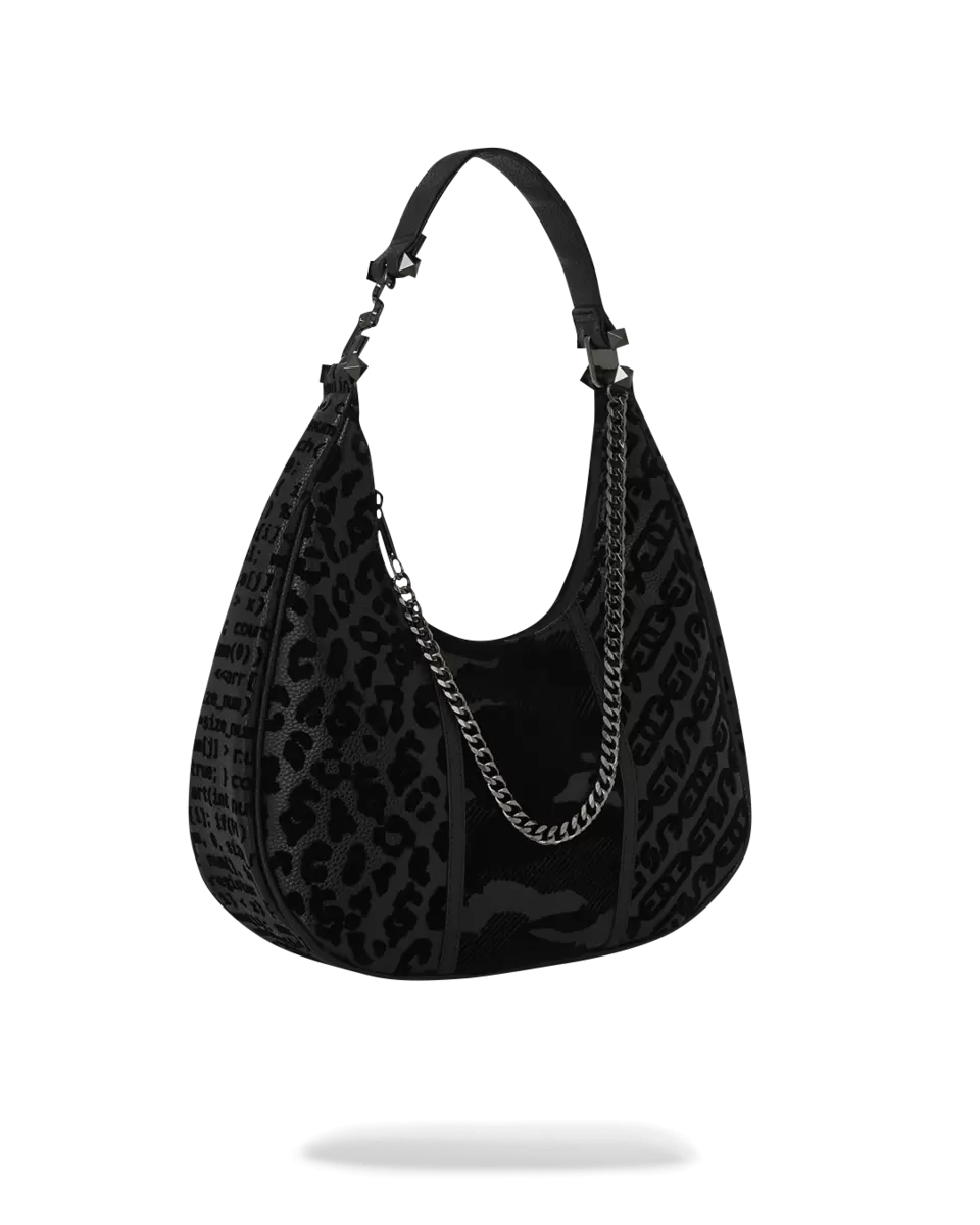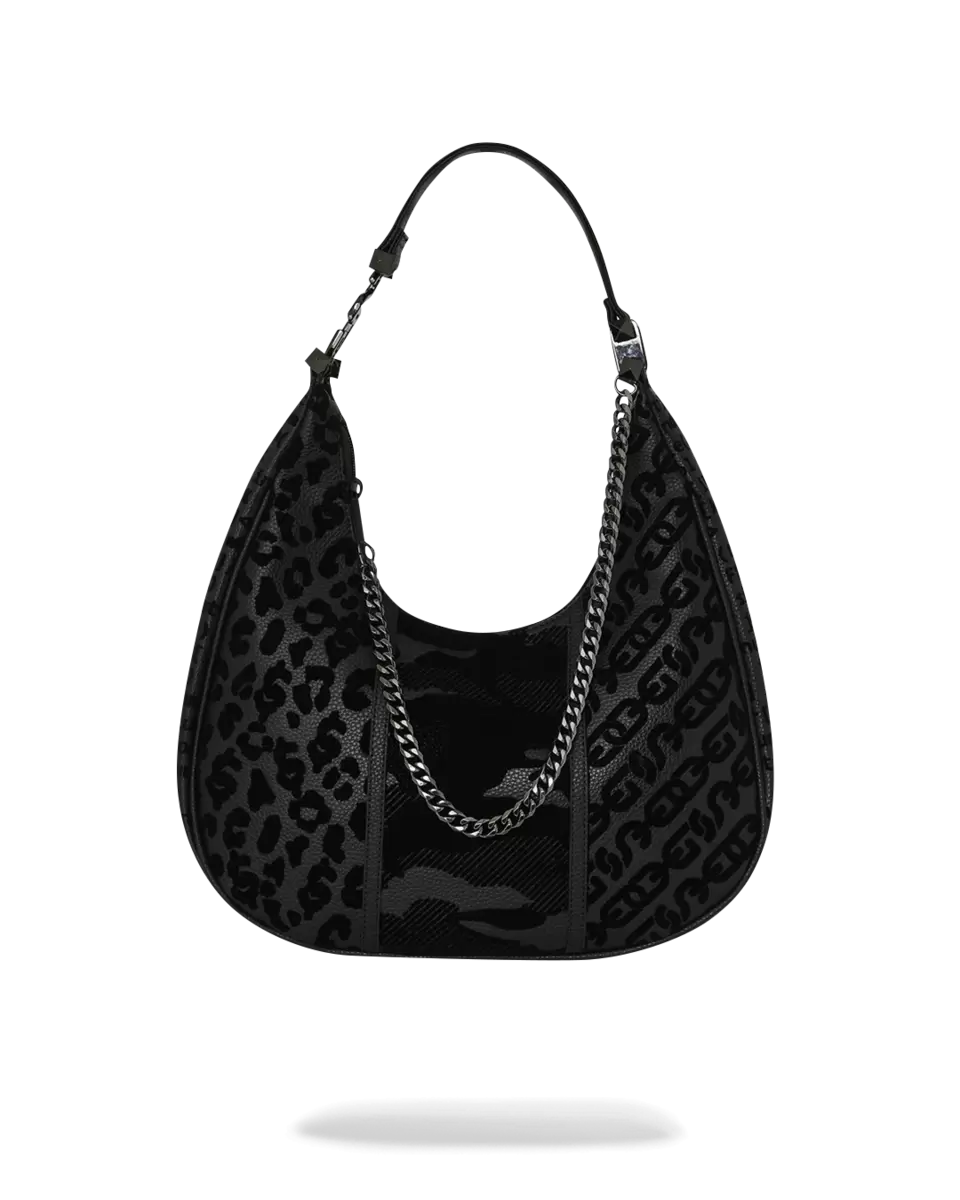 Schultertasche aus PVC mit Beflockungstechnik, PVC-Applikation und aufgenähtem Haifischmaul.