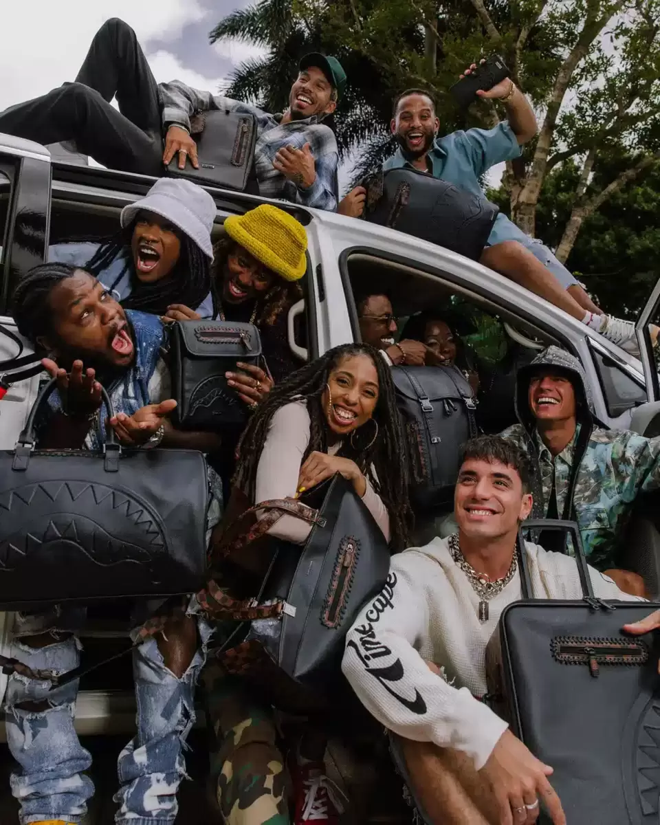 PVC-Tasche mit geprägten Details wie Haifischmaul und Reißverschlussanhängern. Ziernähte Kunstlederdetails an der vorderen Reißverschlusstasche. Verstellbarer Schultergurt.